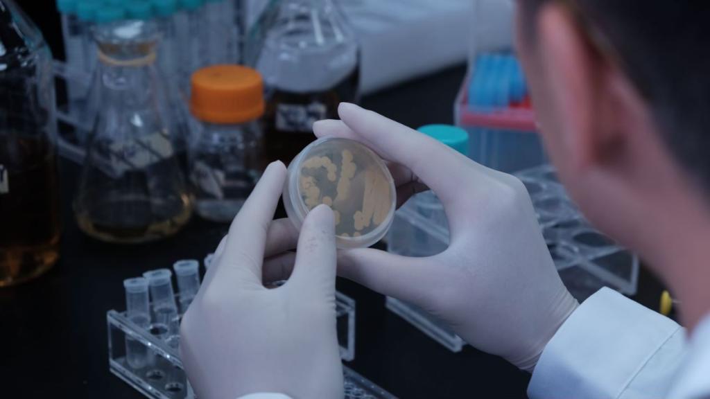 苏陀科技实验室内康定荣博士正在观察菌株形态。受访者供图