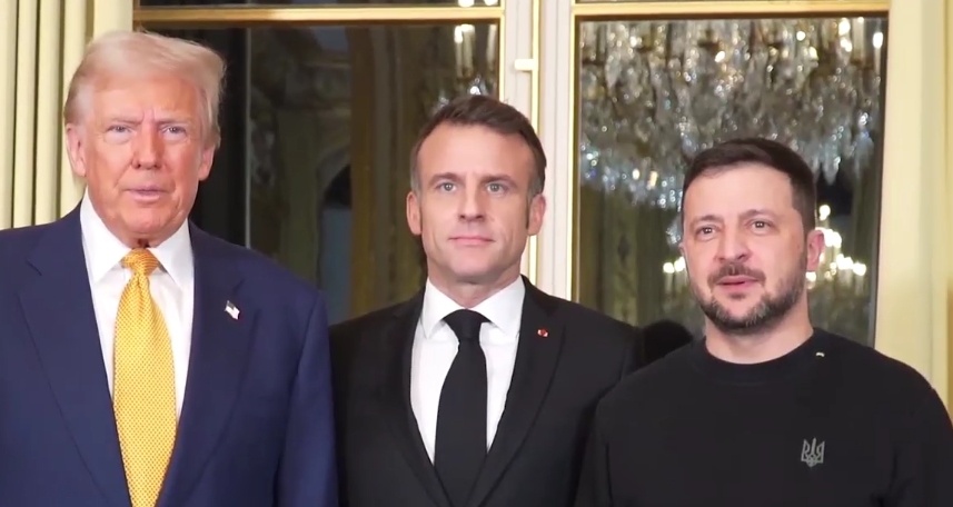 当地时间12月7日,在巴黎圣母院重新开放仪式前,法国总统马克龙与美国当选总统特朗普和乌克兰总统泽连斯基举行三方会晤。据悉,这是特朗普赢得美国总统大选以来与泽连斯基首次面对面的会晤。