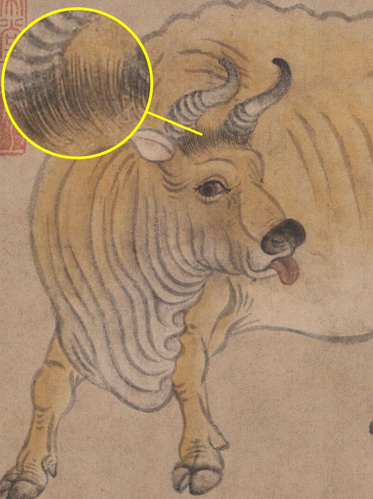 △上图:《五牛图》部分乾隆印章;下图:乾隆御题“兴托春犁”,将国家兴亡托付于春耕。