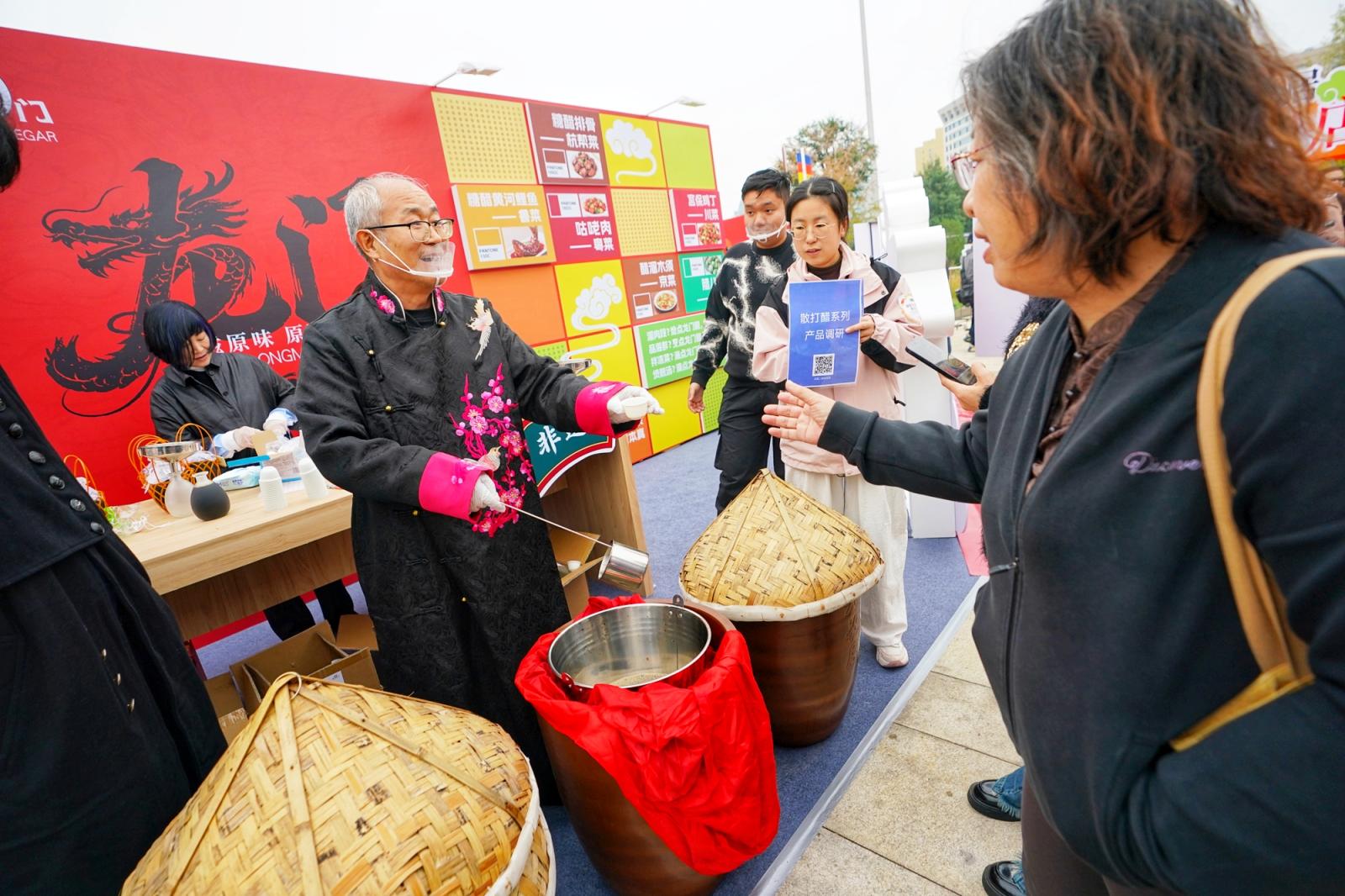 另一边则是对传统“烟火气”的致敬与回归。在六必居特展区,醇厚的“散打二八酱”和“散打酱油”吸引众多市民排长队,体验那份最传统的地道风味。龙门米醋的“散打醋”,也是一份充满怀旧感的传统体验,重温“打醋”乐趣唤醒市民的久远记忆。