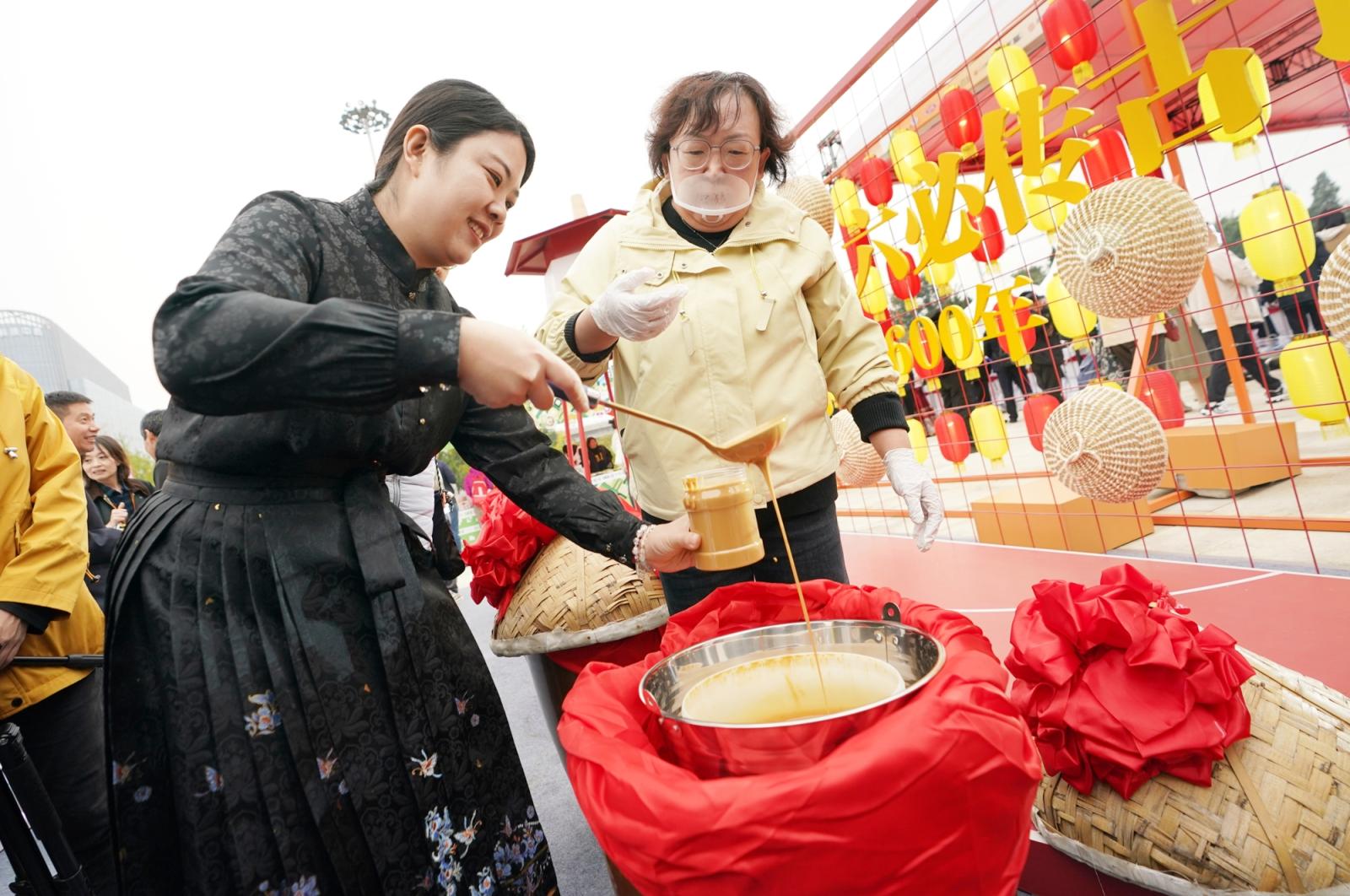 既能吃,又能看,让非遗传承“活”起来,是举办酱菜文化美食节一大初衷。在“匠心酿造”“岁月陈香”等打卡点,市民可通过互动装置,沉浸式感受非遗传承中不可或缺的“手作温度”“时间价值”。市民游客现场拍照打卡,还可获赠印有潮流文案的定制款“显眼包”,更成为市集里一道流动的风景线——非遗文化以时尚方式被“带”回家。