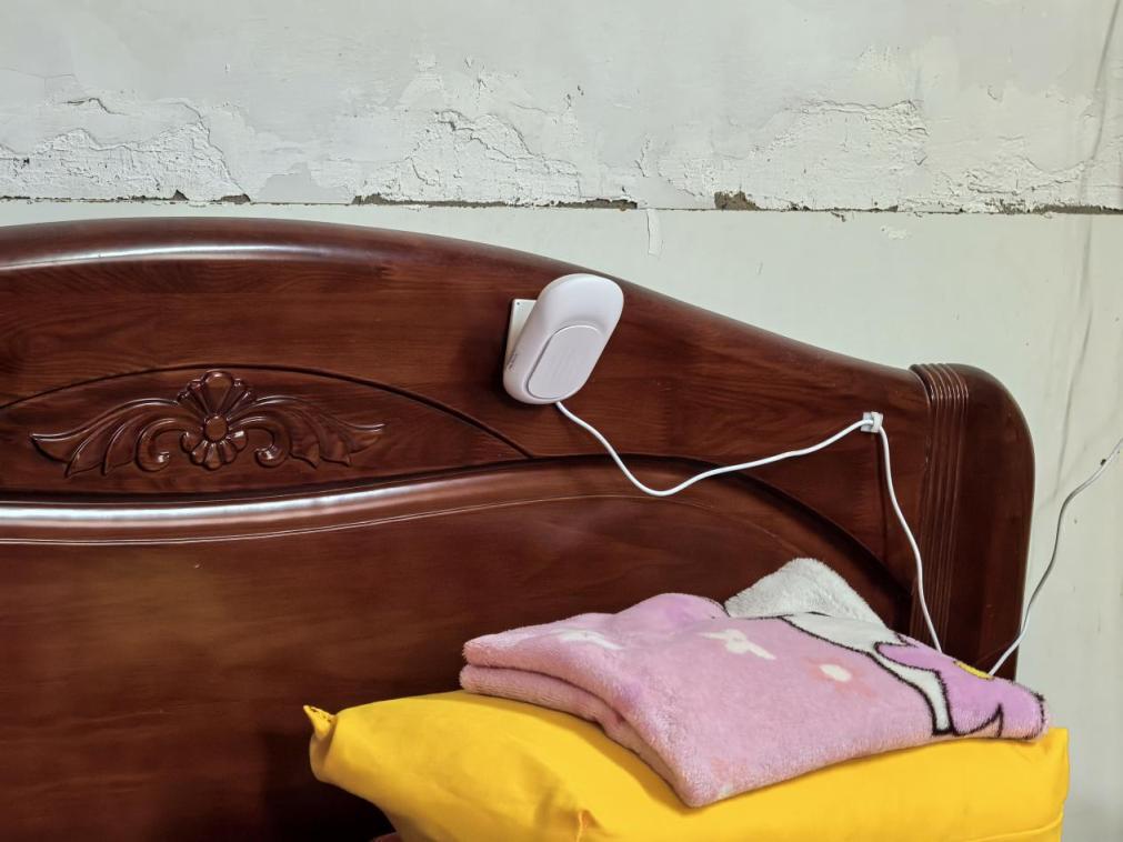 钱奶奶床头还安装有SOS报警器,身体不舒服时,只要按下就能及时通知子女。靠墙一侧,则安装了红外感应器。老人无需任何操作,就能自动监测。此外,钱奶奶家里还安装有用水记录仪,如果出现异常,就会结合无线门磁等设备,通过算法分析自动报警。