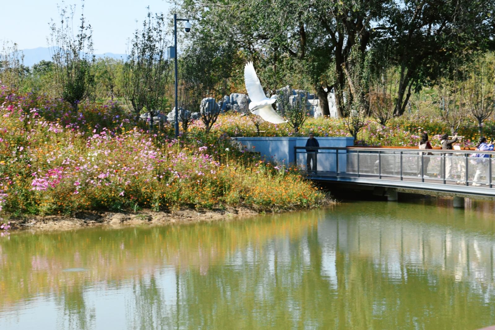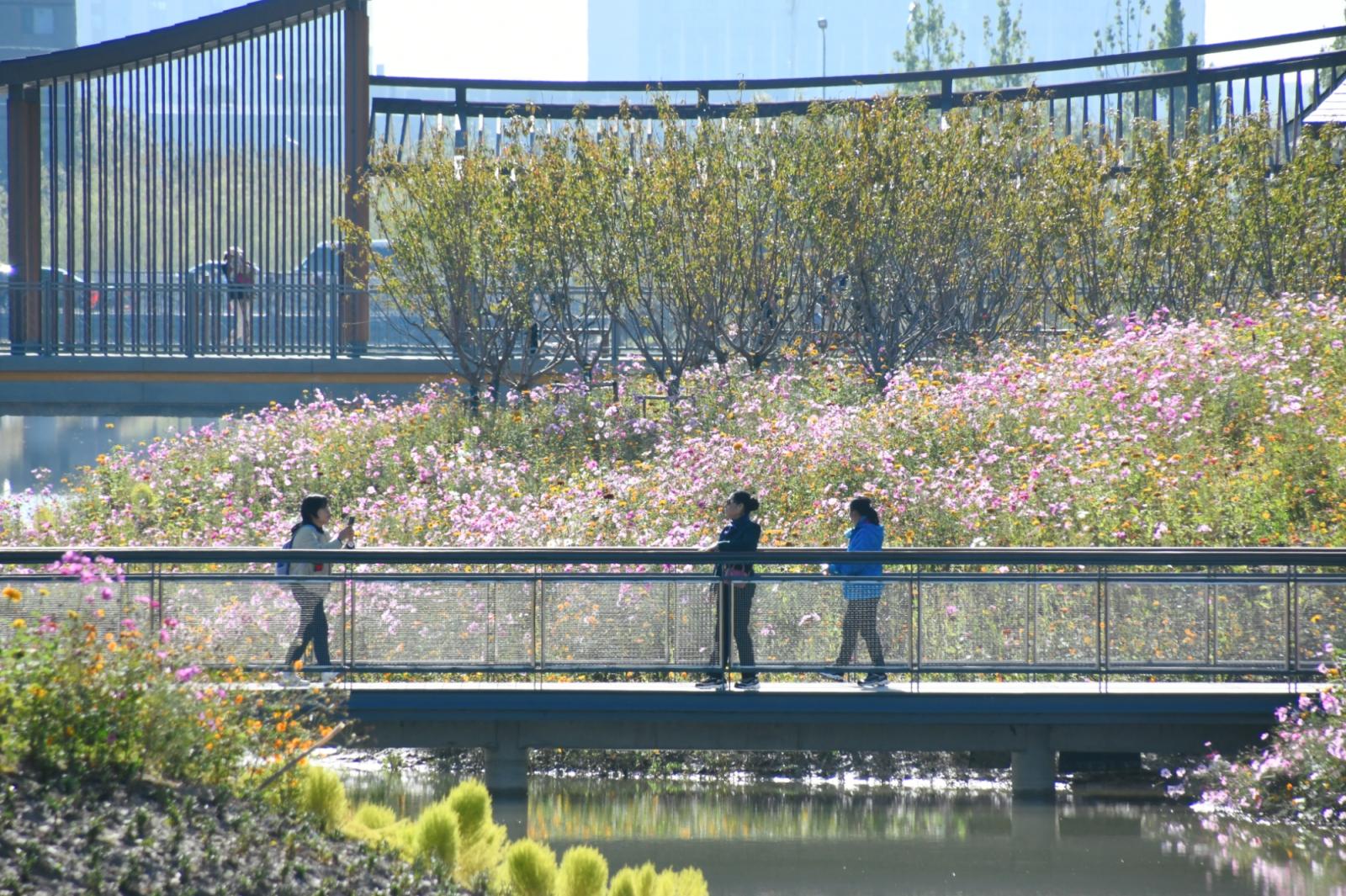 除了“颜值”在线,玉河湿地公园更暗藏“生态智慧”。“六条净水环廊”通过循环补水、景观跌水、互动提水等生态工程技术,串联起河、湖、坑、塘、溪等多种湿地形态。这套系统如同湿地的“生态肾脏”,能持续提升水体自净能力,让园内水体始终保持澄澈透亮,既为鱼虾、鸟类等生物营造了宜居的栖息环境,也为市民开展亲水活动奠定了安全生态的基础。“净水环廊”还能对南沙河的水质改善起到积极促进作用,实现“一人受益、周边共享”的生态效益。