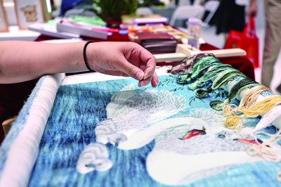 第五届中国国际消费品博览会上,参展商在制作湘绣。新华社发