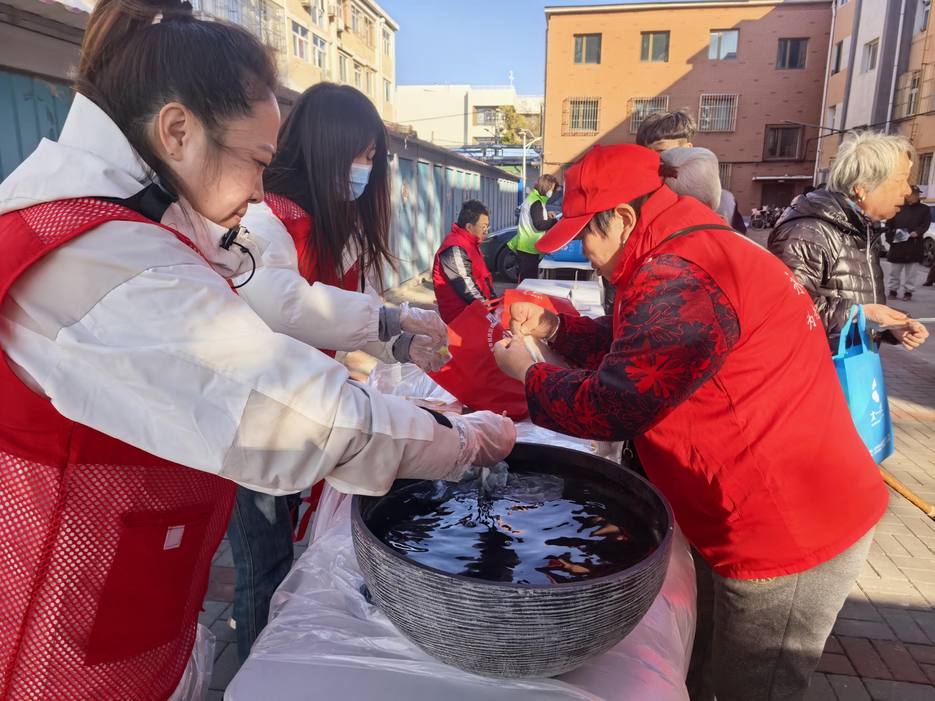 3号楼旁的老杨树下,每月如约而至的“老乡亲便民服务大集”同样人气十足。理发、按摩、漆扇、扎染体验等12个摊位前围满了人。在漆扇体验摊位前,一位老人将多种颜料滴入水中,看着色彩在水面晕染成绚丽图案,再将团扇浸入,一把独一无二的漆扇便诞生了。“这就像变魔术一样!”李大妈举着自己亲手制作的漆扇,向身边的老邻居展示。