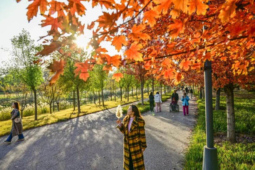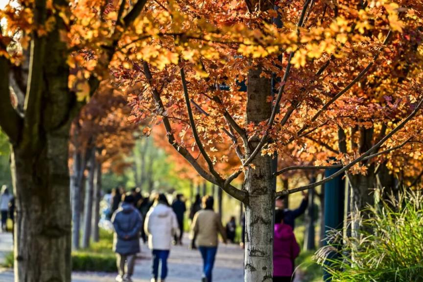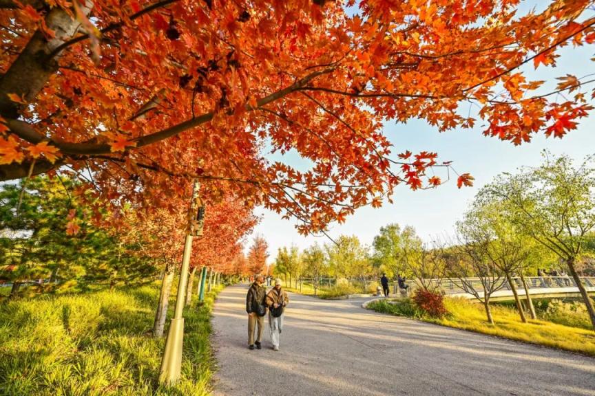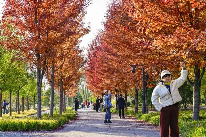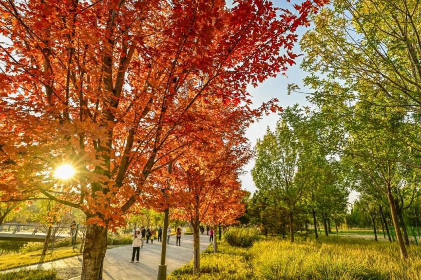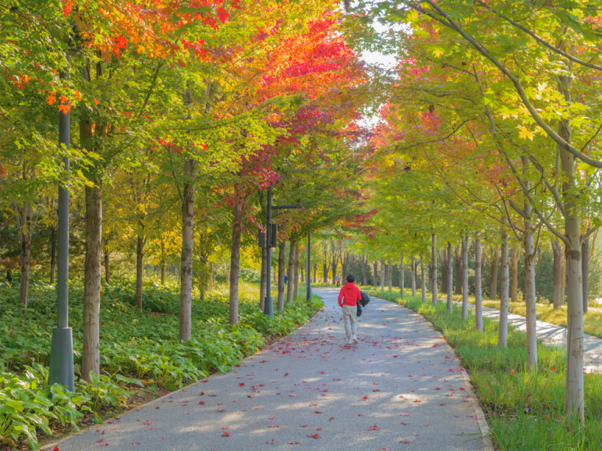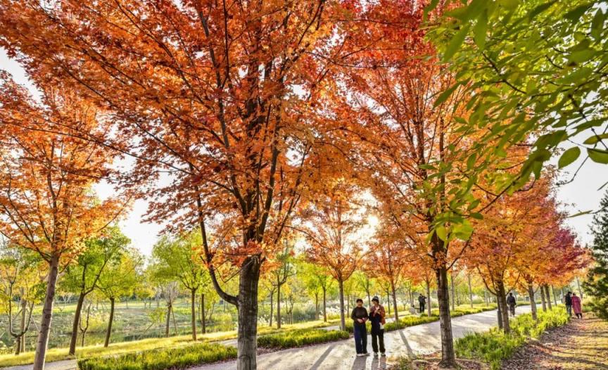 这里集中种植了近600株银红槭,形成了规模可观的红叶观赏带。