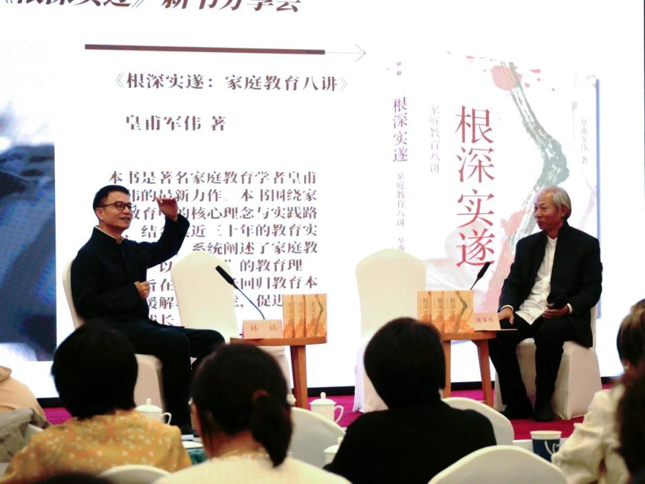 《根深实遂:家庭教育八讲》新书分享会日前在国家图书馆举行。著名家庭教育实践专家皇甫军伟携新作与现场近百位专家、读者,以及线上近万名观众,围绕家庭教育的“根与魂”展开深度对话,探讨当下家庭教育的实践路径。