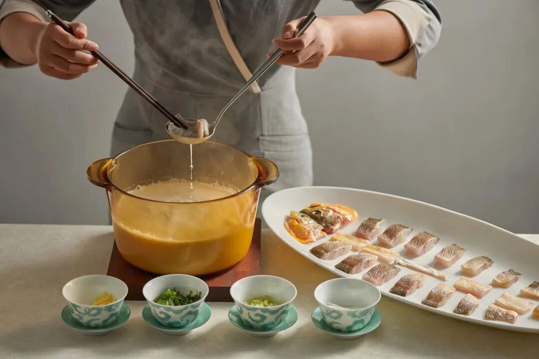 潮上潮是一家高端潮汕菜餐厅,主厨始终秉持“稳定比创新更重要”的理念,让每道菜尽显潮汕菜的精细工艺。餐厅以花胶特色与经典潮汕风味为核心,招牌菜有鲍鱼汁扣花胶皇、卤水老鹅头、东星斑金鱼饺等。