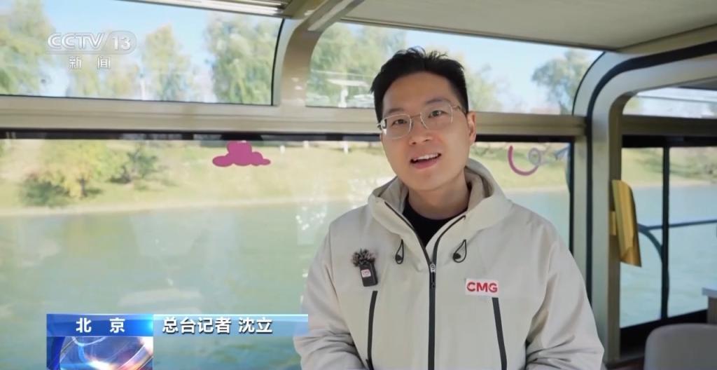 总台记者 沈立:随手一拍,就是户外大片。这里是北京首条贯穿中心城区到城市副中心的水上旅游航线。我所在的朝阳段,沿岸全年都有繁花点缀。同时,配套的驿站码头则串联起沿岸的商圈和文创园区,让这条有着千年历史的漕运古道,逐步转型为世界级滨水经济区,完成从“单一河道”到“水城共融”的华丽蜕变。