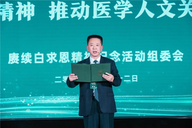 活动最后,白求恩精神研究会执行副会长陈天平代表各方发布了《弘扬白求恩精神 推动医学人文关怀行动倡议书》。倡议书提出四项核心倡议:一、弘扬白求恩精神,做有温度的医者;二、共建公益生态,提升服务效能;三、倡导慈善文化,营造尊医重卫氛围;四、深化医学人文教育,助力“健康中国”和中国式现代化建设。