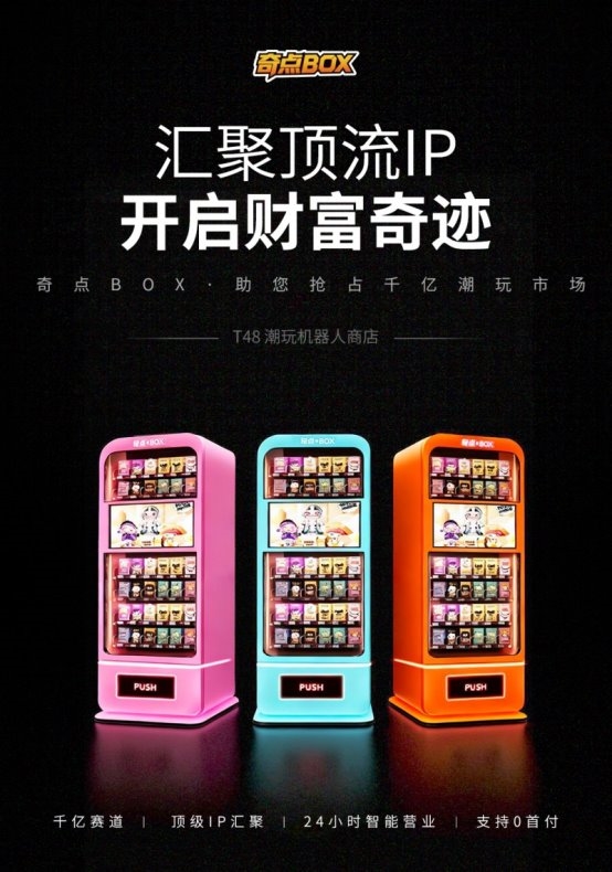 在业内人士看来,“奇点BOX”盲盒机T48的诞生,绝非单纯的智能硬件升级,更是对传统零售边界的突破、创业模式的深度重构,以及新消费浪潮的精准回应。凭借“轻量化、智能化、美学化”的商业模式,让潮玩不再局限于传统的潮玩店、商圈专柜,而是通过千店千面让潮玩深入到消费者生活的“最后10米”。
