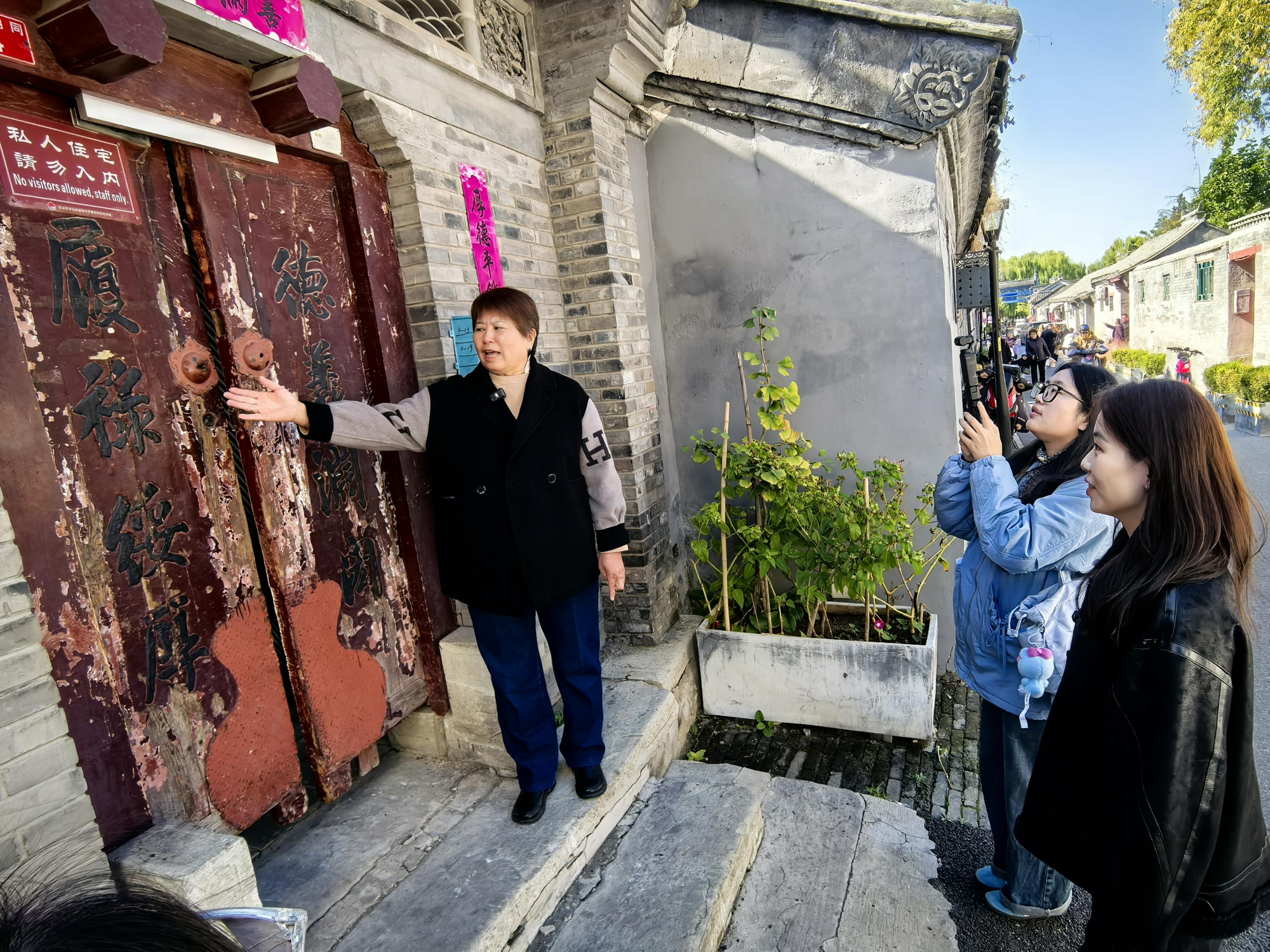家住雨儿胡同的老居民冀红,则成了自家门联“德义渊弘,履禄绥厚”的志愿讲解员。史家胡同文创社的负责人牧思,在胡同研学中总会向孩子们解读门联的含义。她们认为,这种口耳相传的“文化唤醒”,与实体修复同样重要。