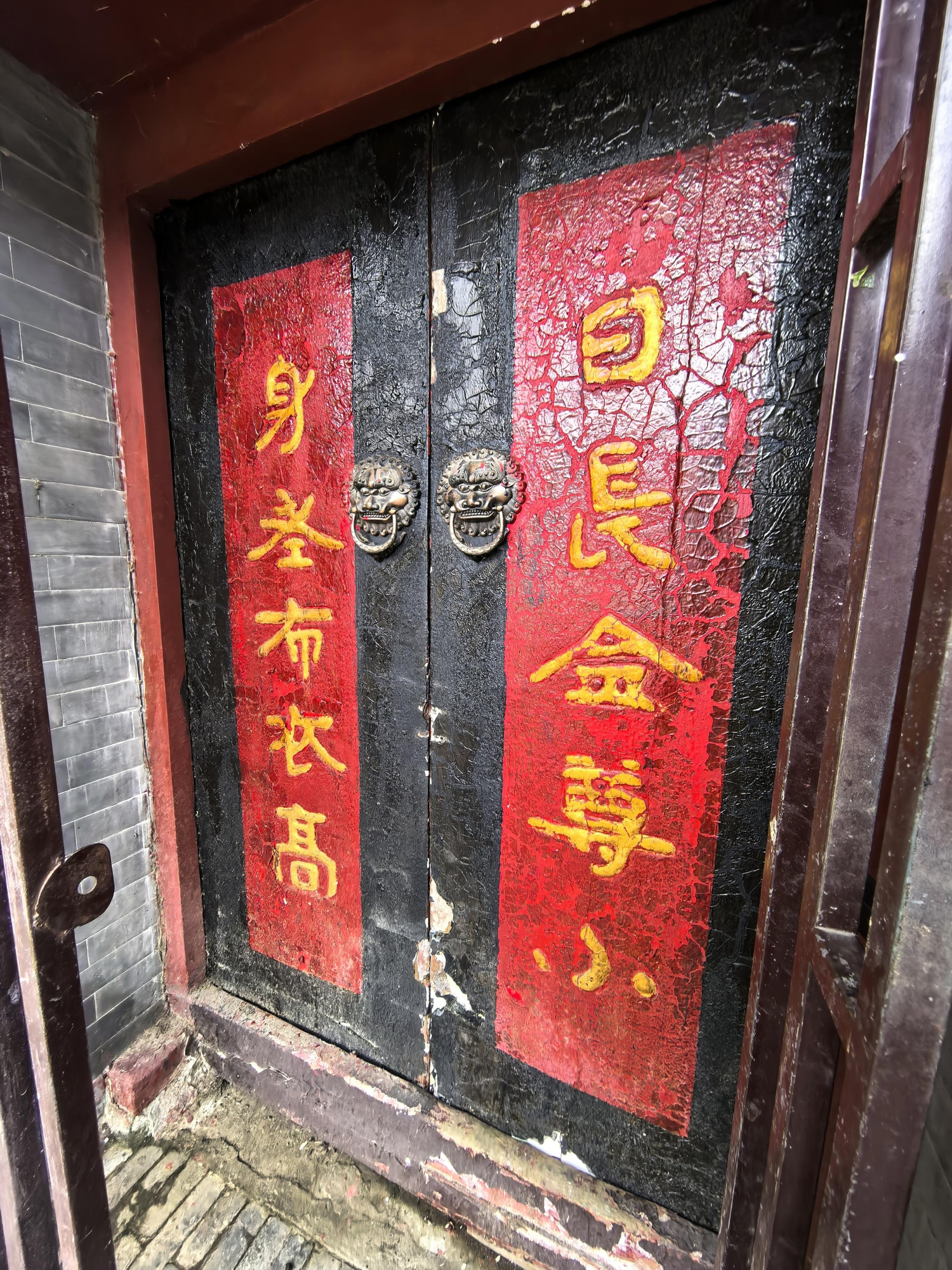 她翻出一张2017年拍摄的照片:西四北头条的一户门上,“信诺重千金,立名驰四远”十个红底黑字,笔画平整,字形方正,显得庄重而沉稳。“这讲的是诚信为本,一诺千金。”熊文解读。然而,一年后再访,门板红漆已开始剥落,黑色的字迹在风雨侵蚀下模糊了大半。又过了半年再访,带门联的老门板已不知所终,取而代之的是一扇崭新的、毫无个性的木板门。