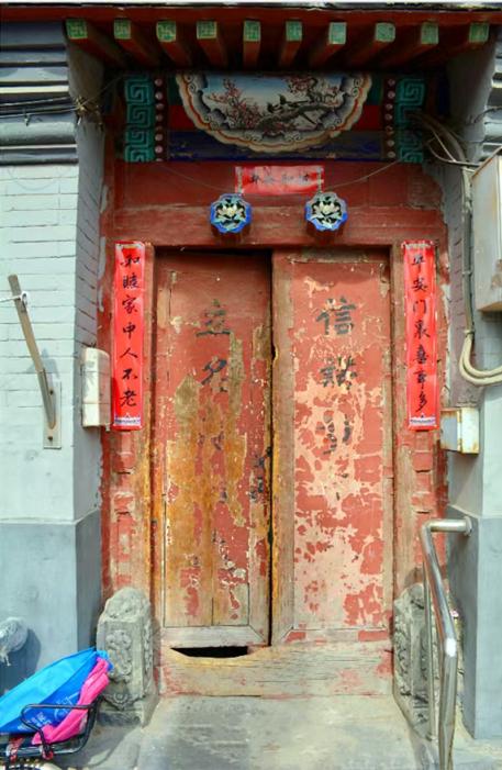 “我家以前住长巷头条58号,原主人是经商的,先做麻绳,后做针织,生意做得不小。所以门联是‘经营昭世界,事业振寰球’,可是前些年搬家时被偷走了一扇,到现在我还心疼呢,现在只留下‘事业振寰球’,但我可不敢再亮出来了,包起来存着呢!”75岁的前门住户翟老爷子告诉记者。