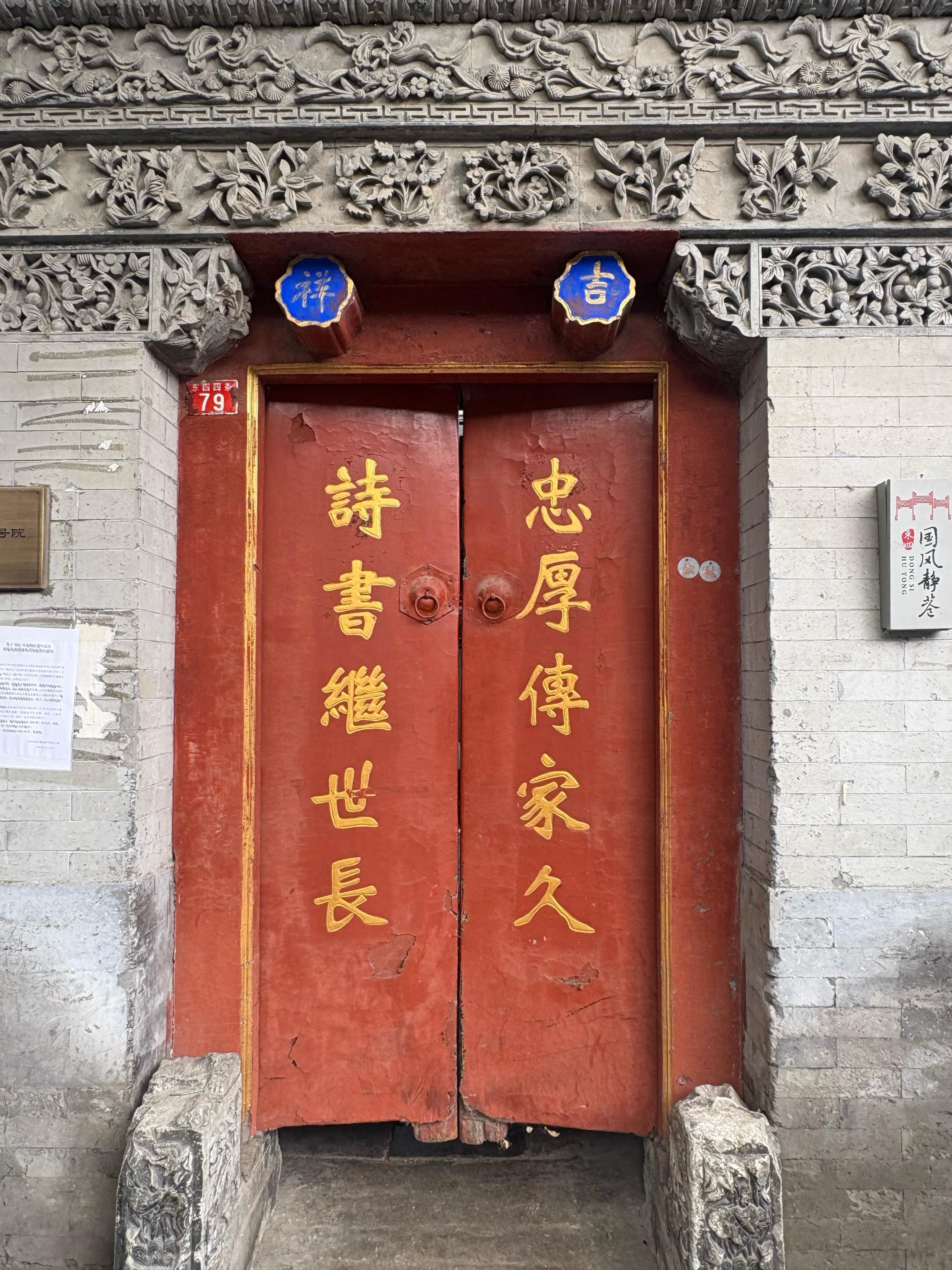 这些刻在门板上的文字,是祖先留给后人的家书,是寻常人家最朴素的精神坐标。有居民和文化研究者呼吁,应将胡同里的门联、门墩、砖雕等装饰元素,整体视为文化遗产的一部分,进行系统性地挖掘、保护、传承与创新。