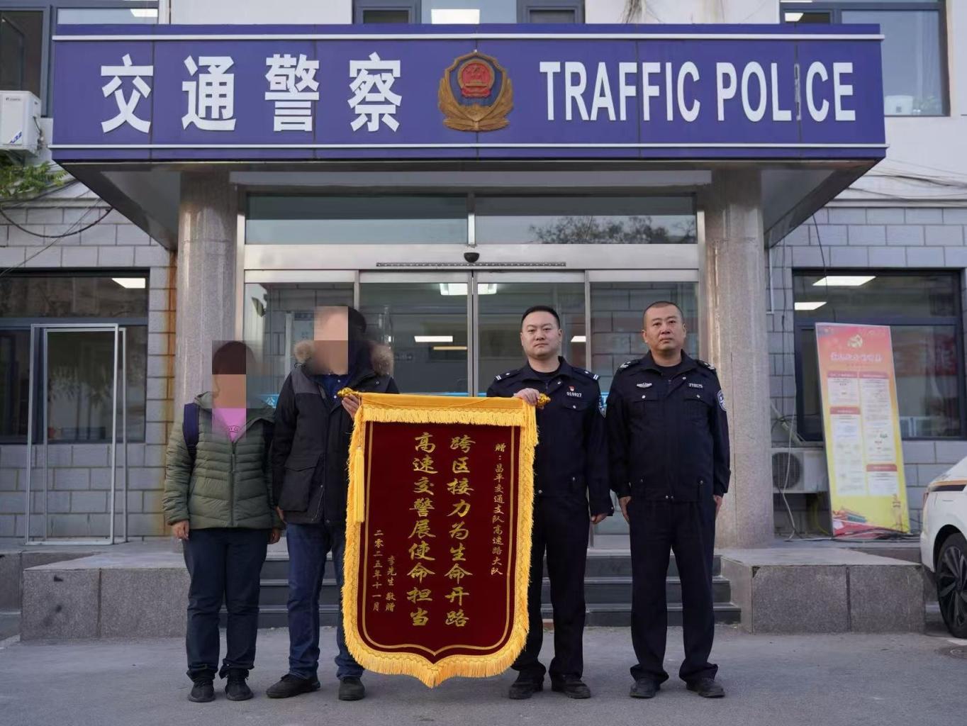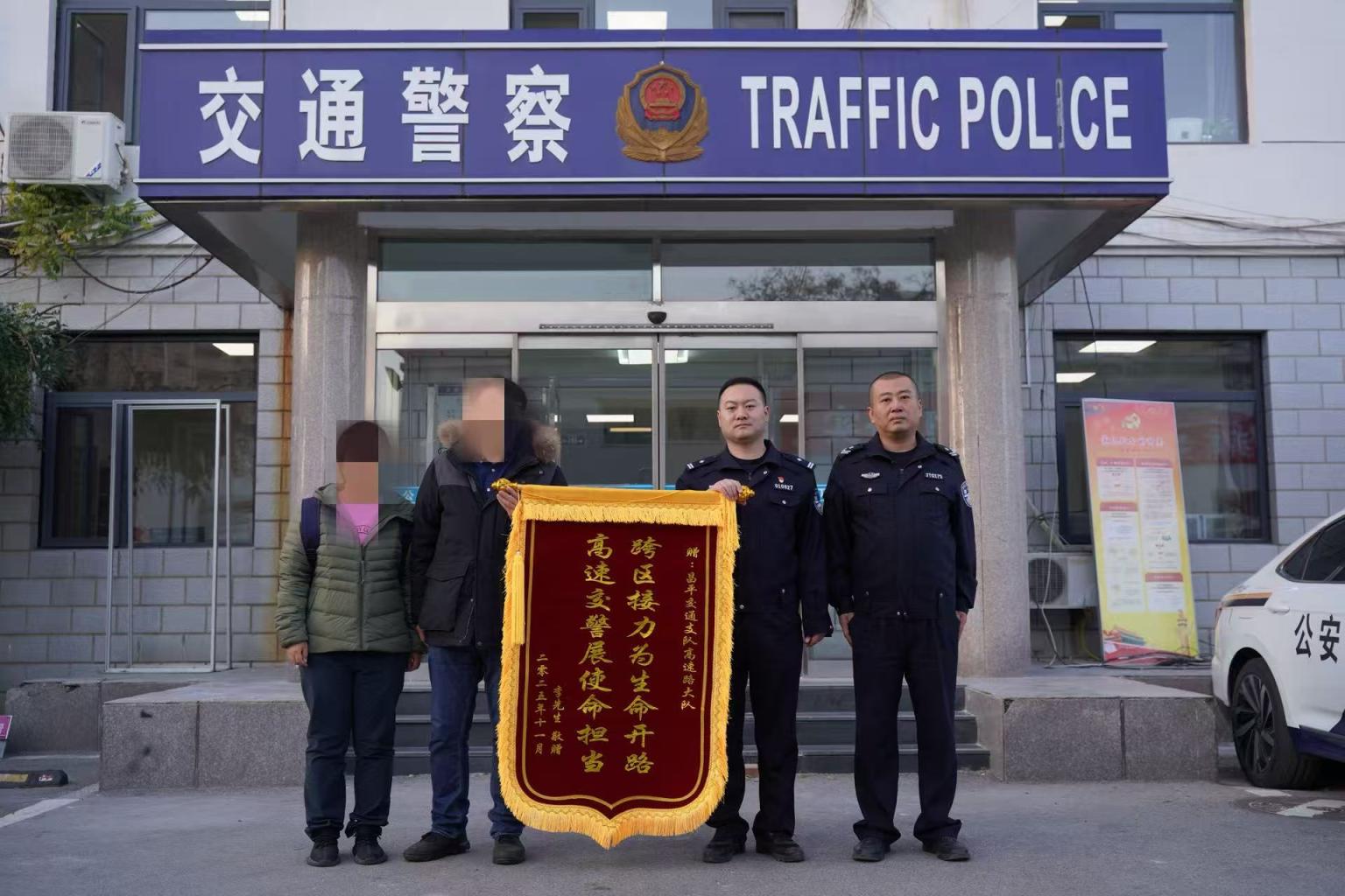 11月19日,患者家属李先生专程来到昌平交通支队高速路大队,将一面写有“跨区接力为生命开路 高速交警展使命担当”的锦旗郑重送到交警手中,感谢他们在危难时刻伸出援手。