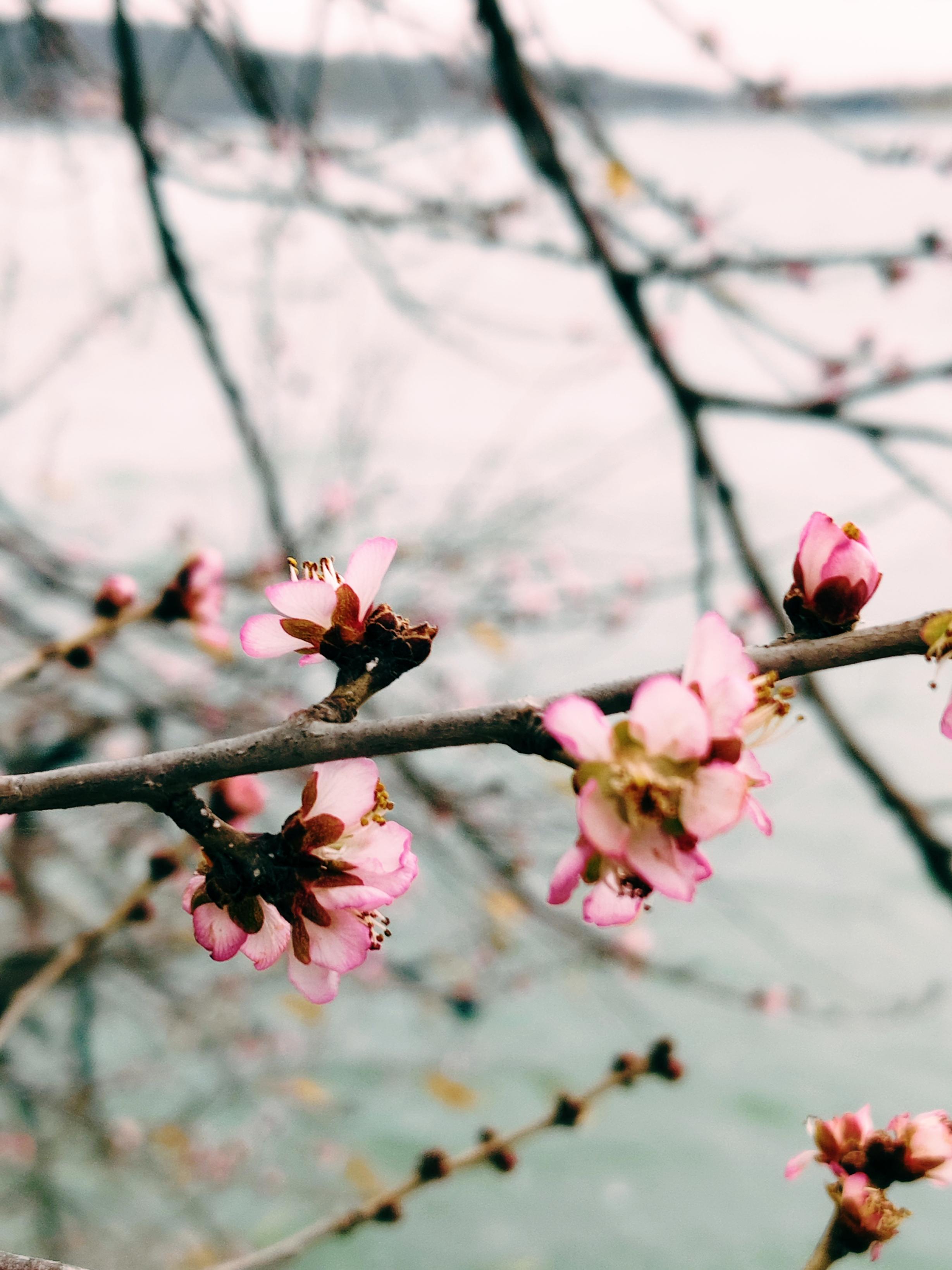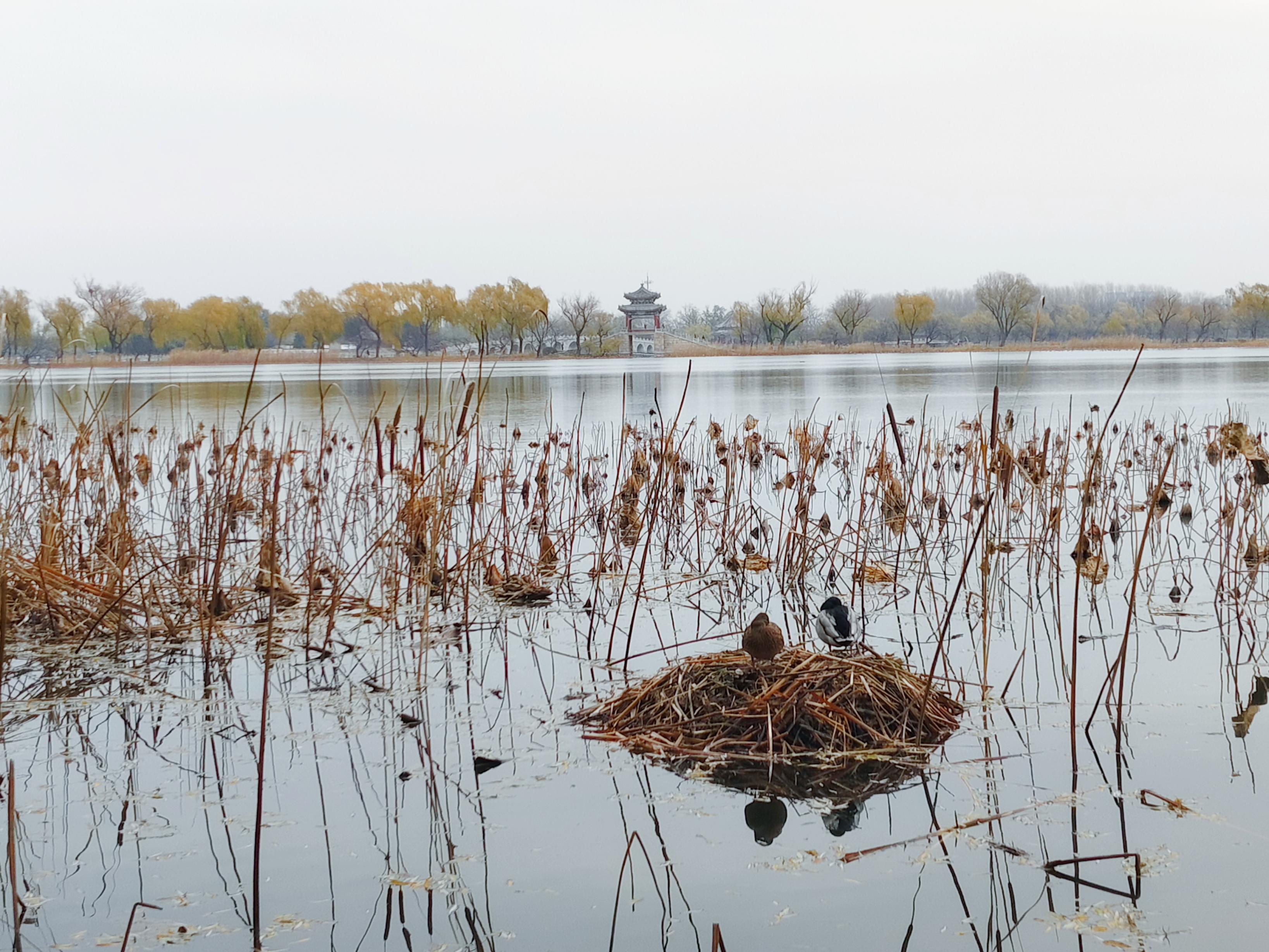 风狂桃艳,芦苇弯腰,柳叶纷飞。