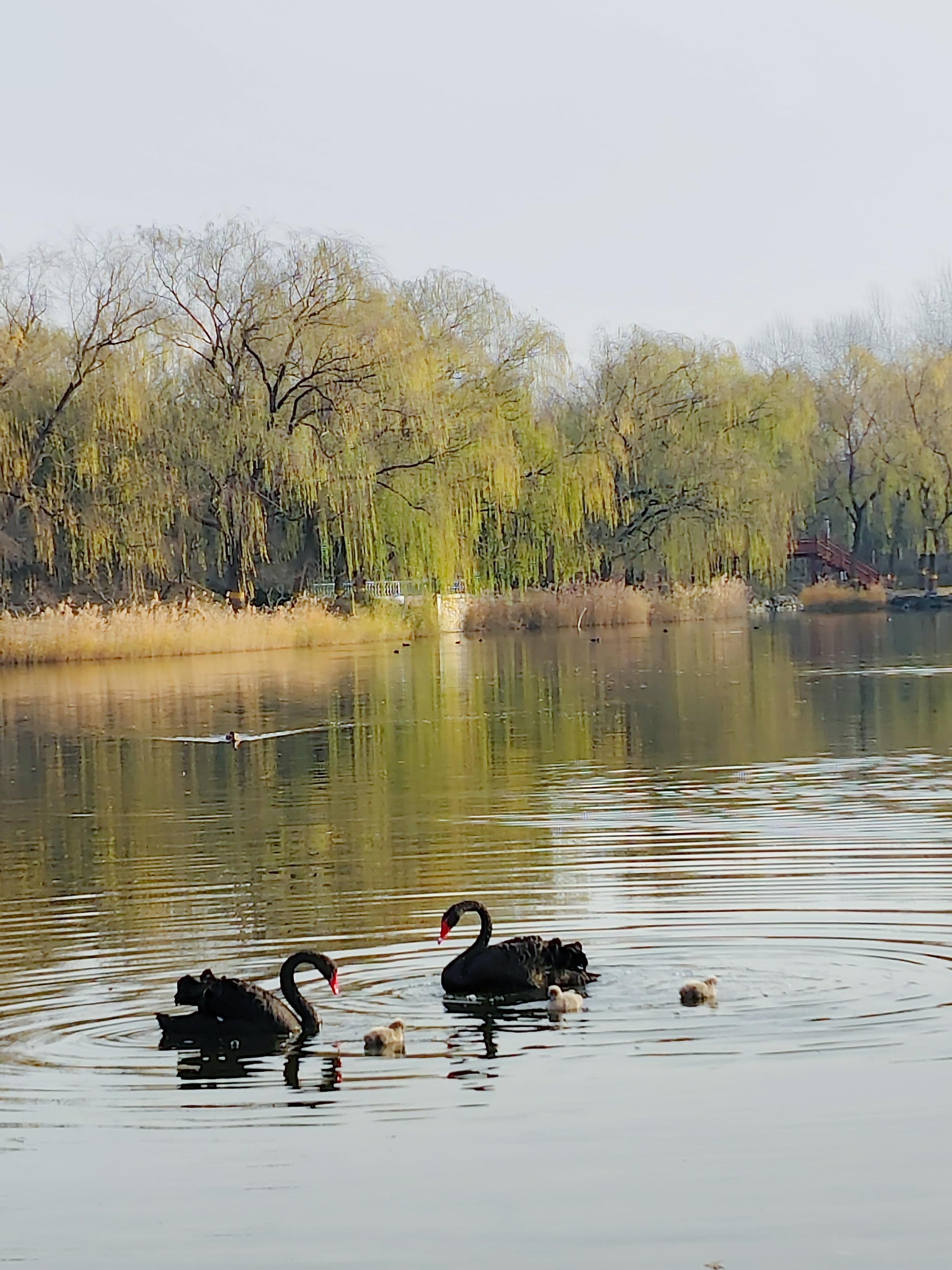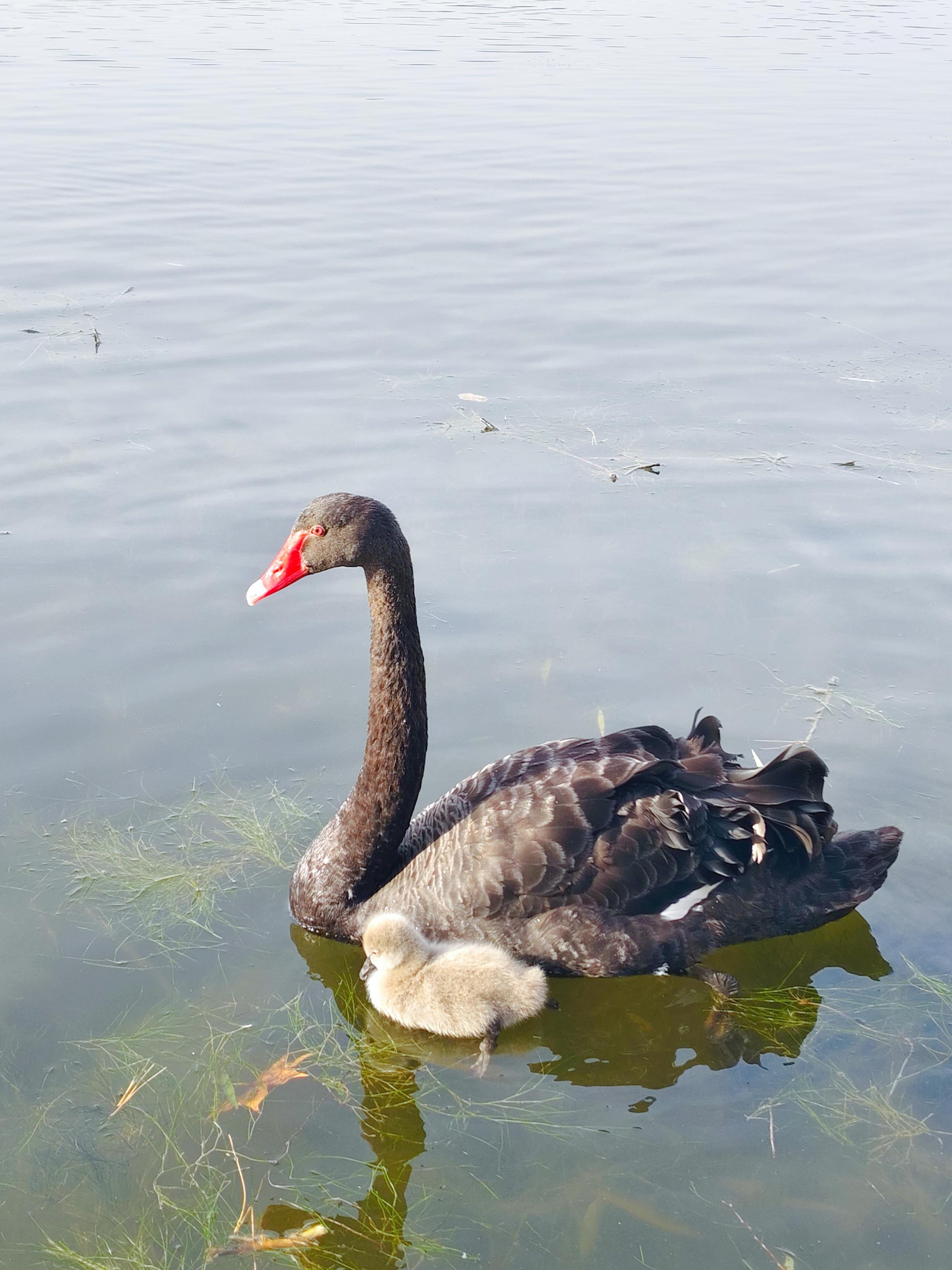 带着它们在湖中游弋、觅食。