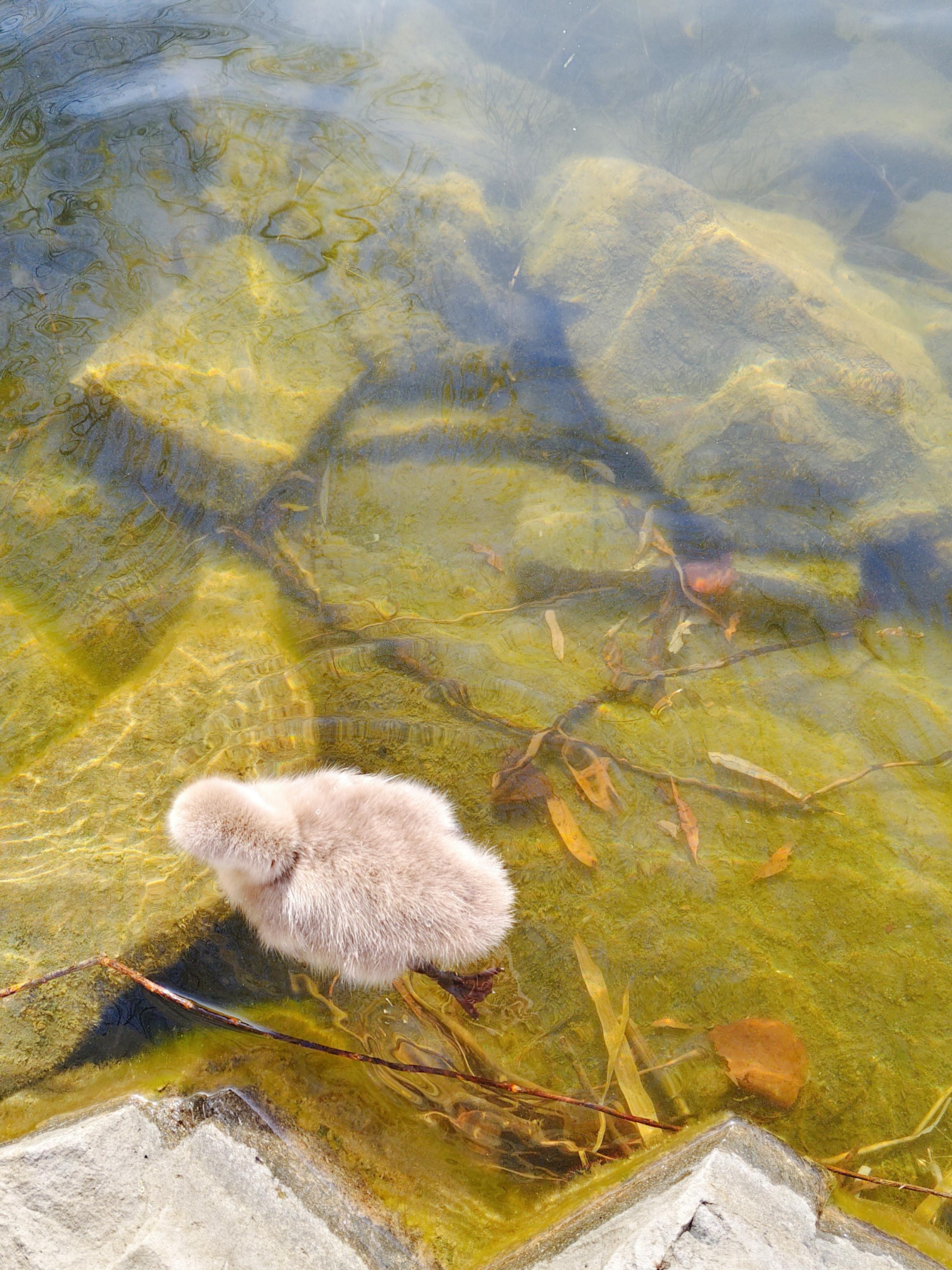绒球般的小家伙为宁静的后湖