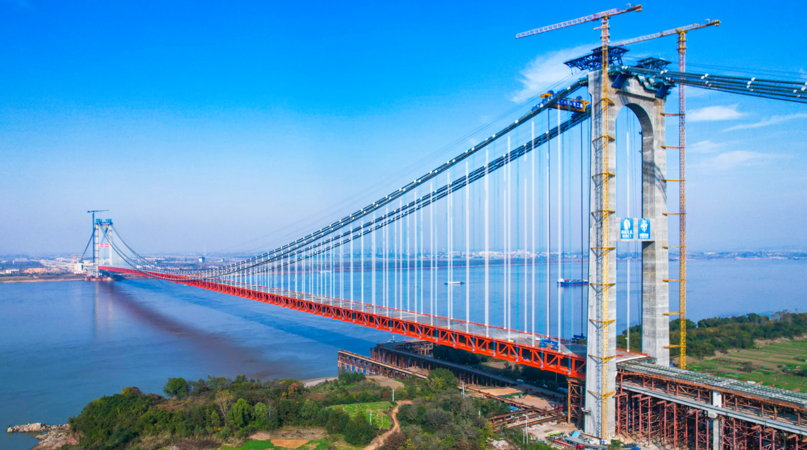 燕矶长江大桥所在江面宽阔、水文条件复杂,四主缆钢桁梁吊装精度要求更高。“为保障大桥顺利合龙,我们对合龙口的标高、里程和轴线不间断地进行监控与测量,精确计算温度、风力等环境因素对钢梁形变的影响,最终,钢桁梁以毫米级的精度平稳嵌入预定位置,南北两岸顺利‘牵手’。”中交二航局燕矶长江大桥项目总工程师罗航表示。