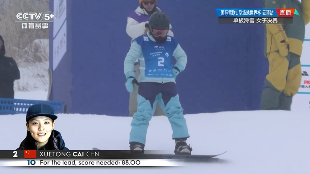 12月12日,2025至2026赛季国际雪联单板滑雪和自由式滑雪U型场地技巧世界杯崇礼站在云顶滑雪公园进行了单板项目决赛。中国选手蔡雪桐在女子组比赛中收获铜牌。