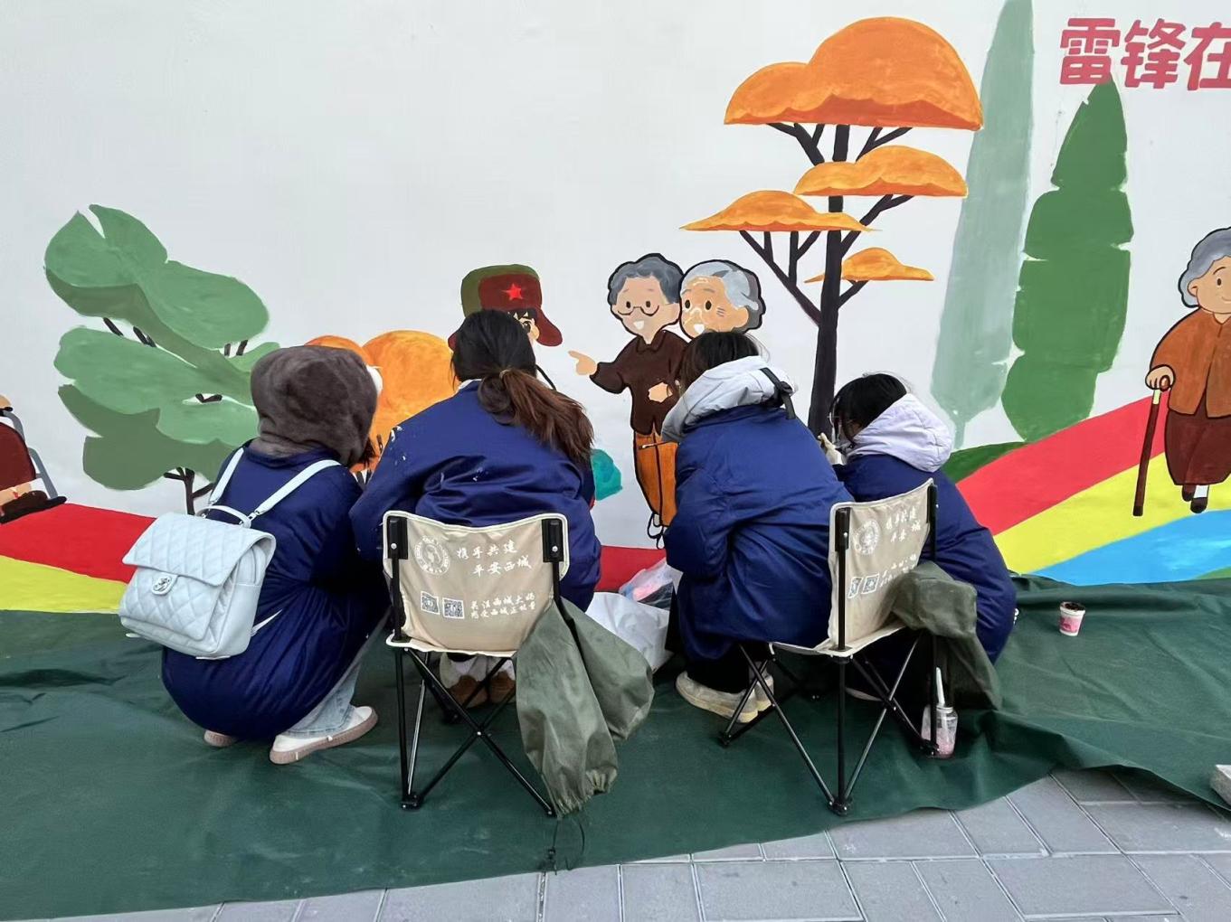 在月坛北街25号院北门入口处,一幅以弘扬雷锋精神和敬老助老为主题的墙绘,把冬日街道点缀得温馨起来。画面里戴着雷锋帽的小朋友正帮老人推轮椅、提重物,不少路人的目光都被这幅墙绘吸引,忍不住夸赞两句。这面墙绘由展览路街道阜外西社区联合北京建筑大学责任规划师团队、建筑学院团委研会团队、规划和园林第二党支部的84位同学共同完成,用时近两周。