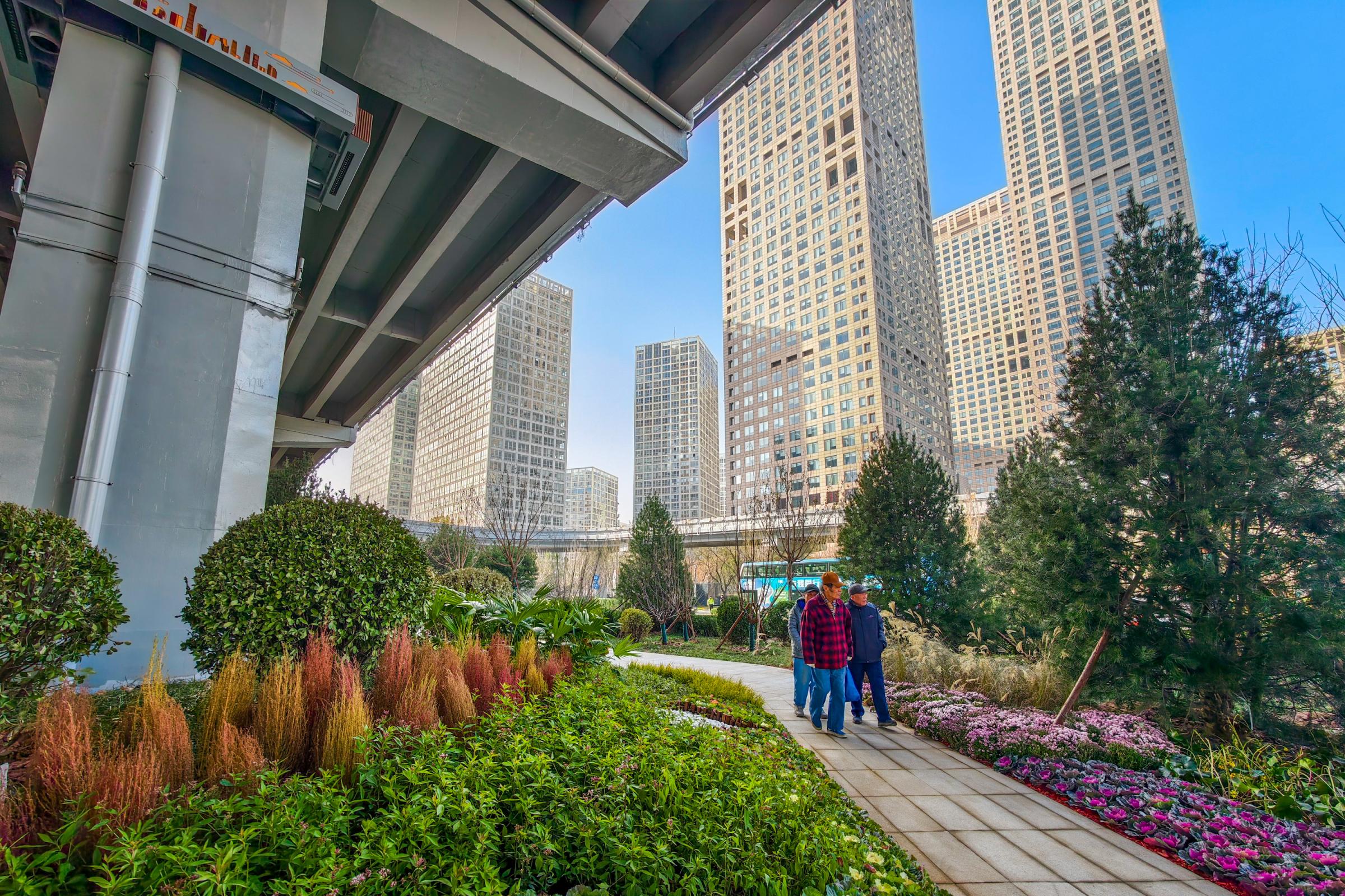 景观提升了——以“花园城市”建设为牵引,桥下空间“应绿尽绿”。国贸桥打造1.1公里“慢行廊道”,整合周边空间构建3.8万平方米绿化景观,面积增幅达170%,配套夜景照明系统成为CBD生态打卡点;燕莎桥以“打通滨水脉络”为核心,升级桥区绿化、增设夜景照明,打造“燕莎码头”主题公共客厅,市民可通过慢行连廊直达,成为亲水休闲新载体。