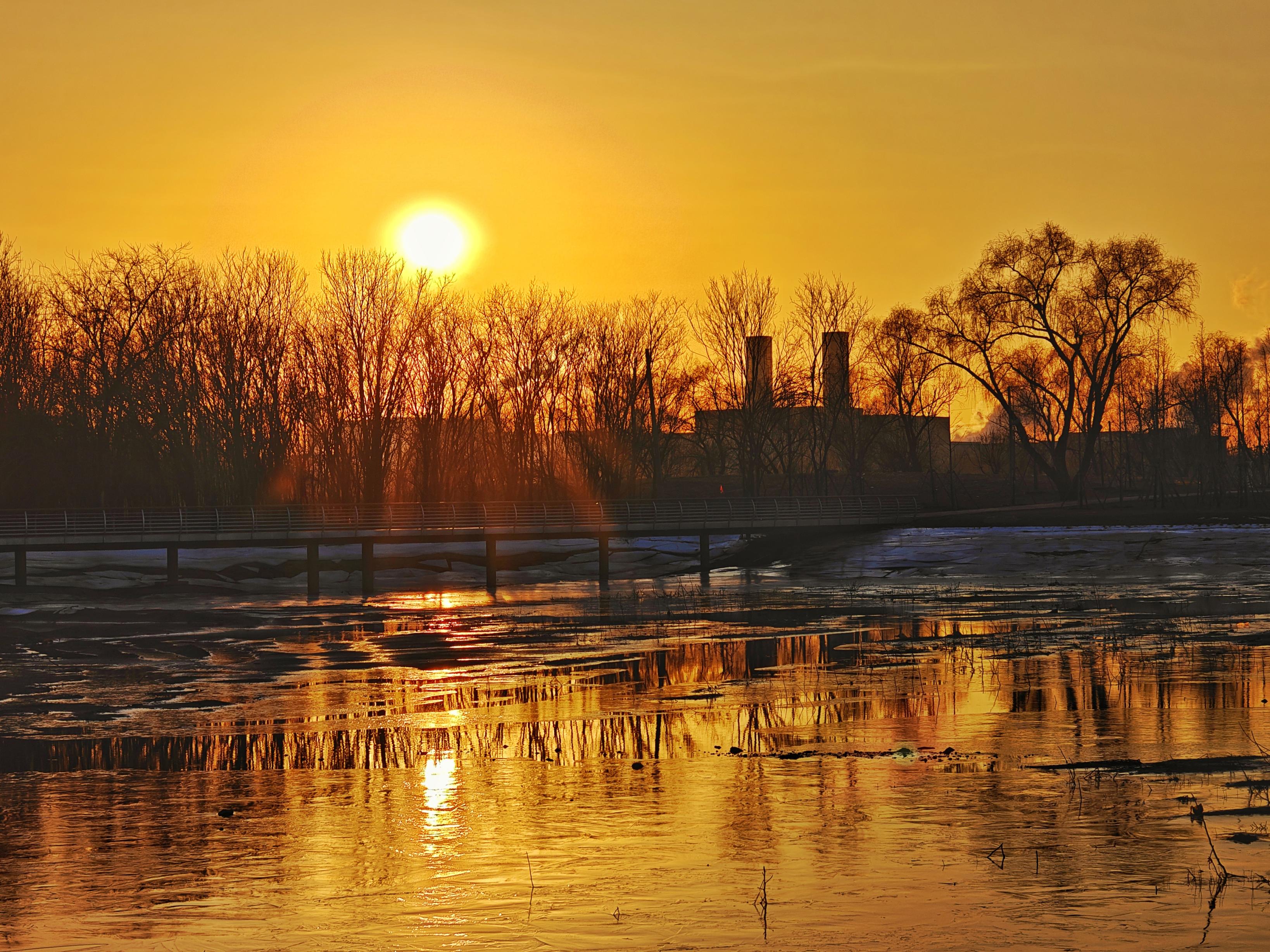 12月21日,冬至。金色夕阳装扮着京城天空,为寒冬增添了几分暖意。