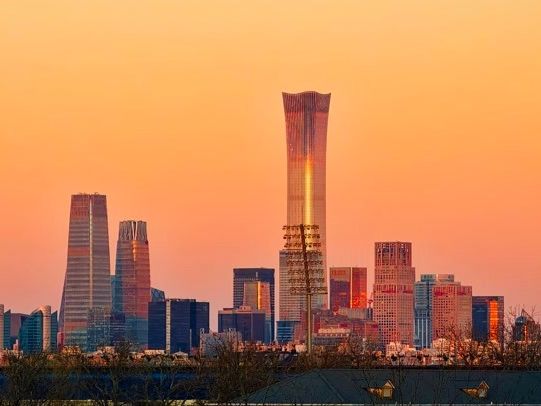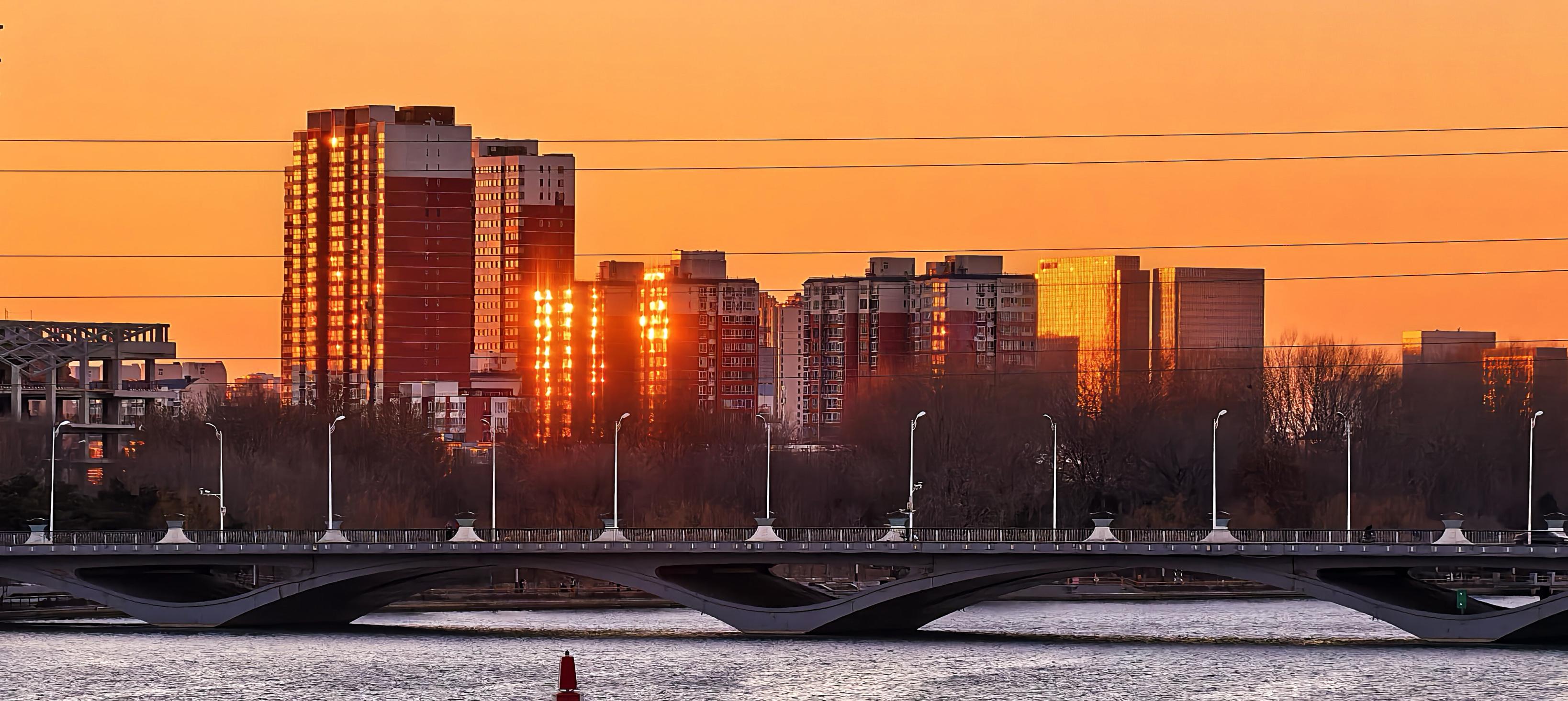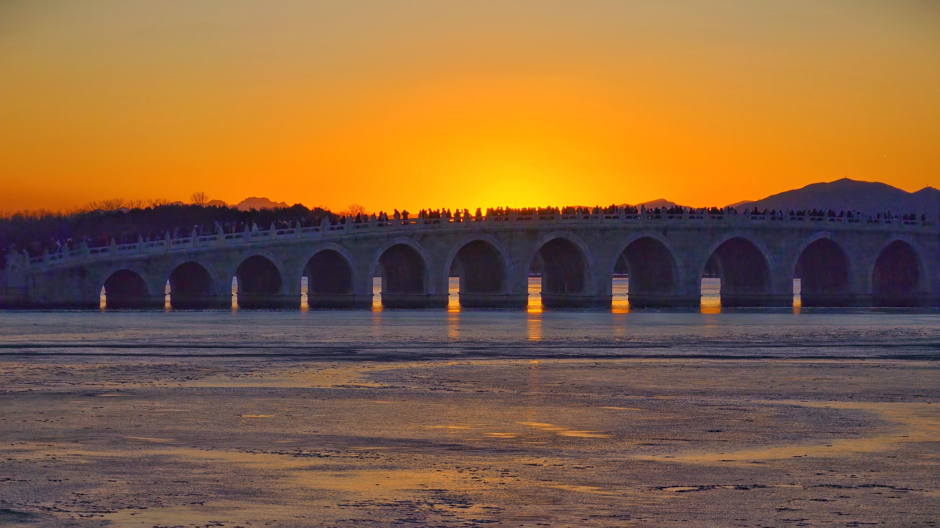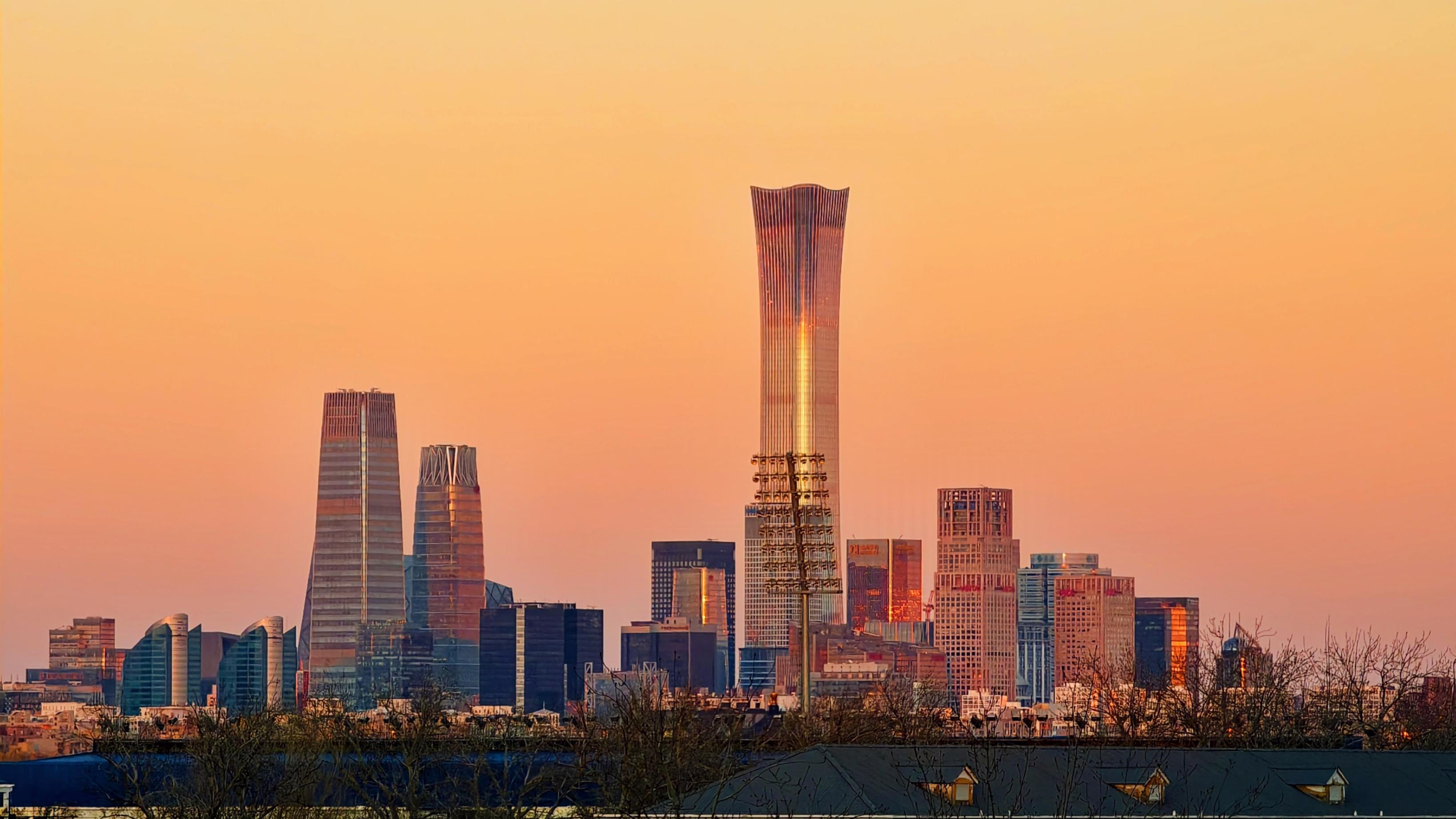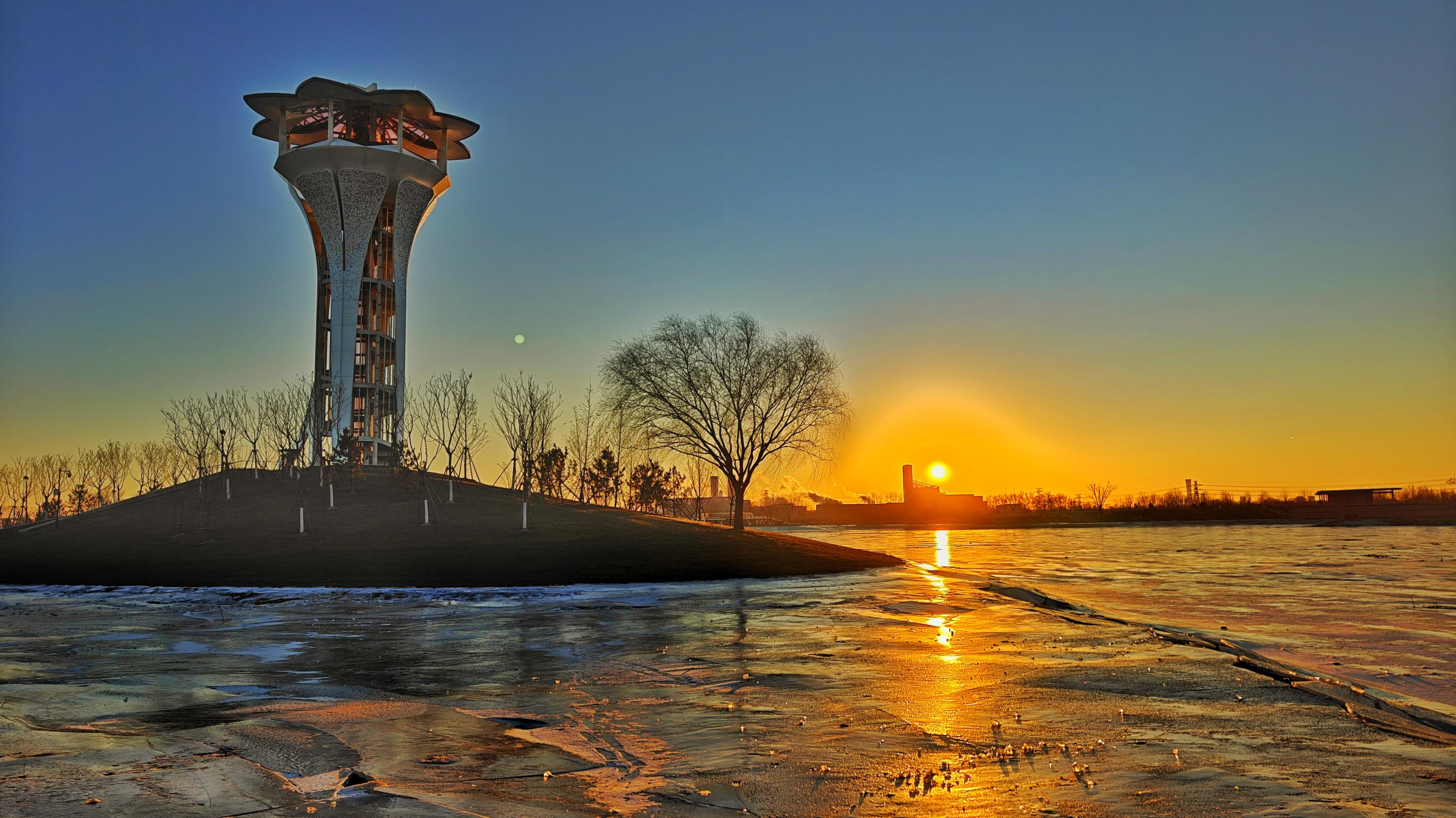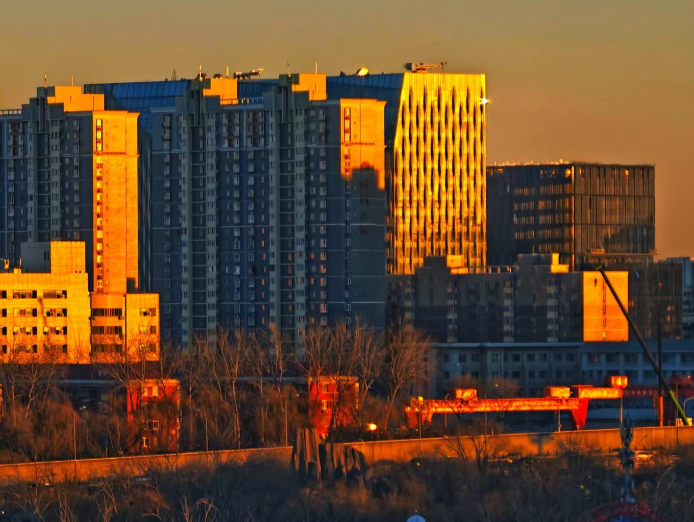 12月23日,北京天气晴好。伴随着一轮金色的夕阳落下,晚霞如彩墨,绘出惊艳的画卷。