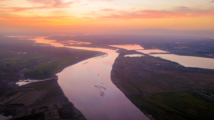这是在内蒙古鄂尔多斯市达拉特旗境内拍摄的黄河夕照景观。新华社记者 彭源 摄