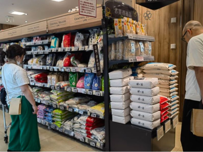 △顾客在日本东京的一家超市购买大米(资料图)