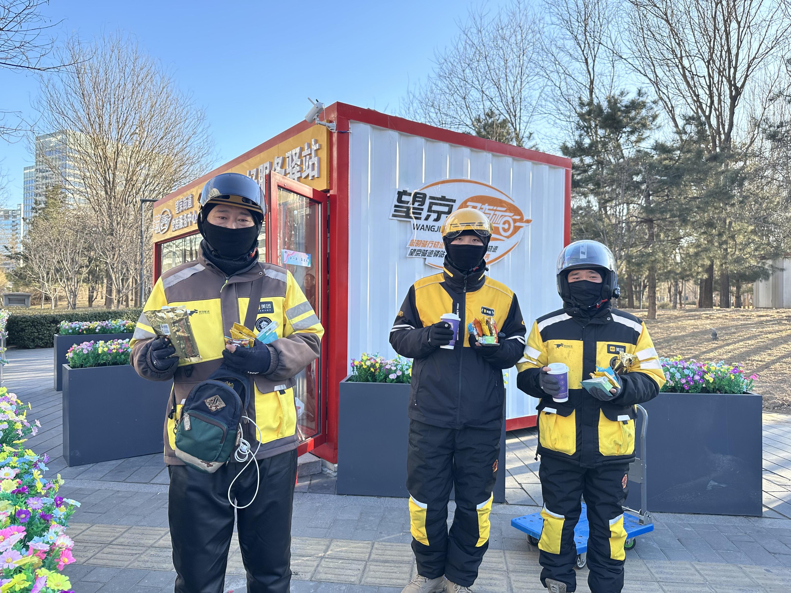 位于望京SOHO和合生麒麟社之间的新兴领域友好服务驿站12月10日启用,持续为户外工作者提供暖心服务。在12月12日北京初雪当天,驿站就为300名骑手、保安等户外工作者送上了雨衣、手机防雨罩、电动车防滑链等物资。
