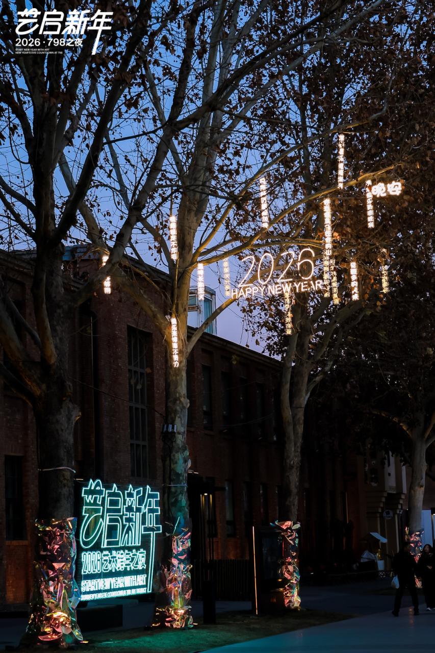 当100多米高的巨型烟囱被数字烟花照亮,抬眼望见主题墙上“这一年,因艺术,会更更更更好!”的新年寄语,北京798艺术区的每条街区都洋溢着欢庆的气氛。12月31日晚,“艺启新年2026·798之夜”大型节庆活动在此盛大举行,以艺术与科技交织的多元体验,吸引众多市民与游客涌入园区,共同迎接2026年的到来。