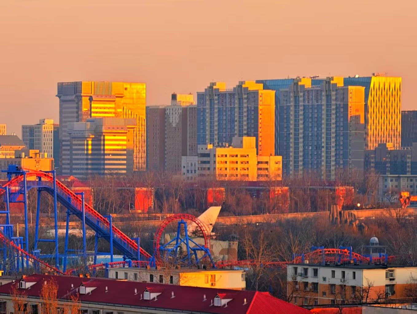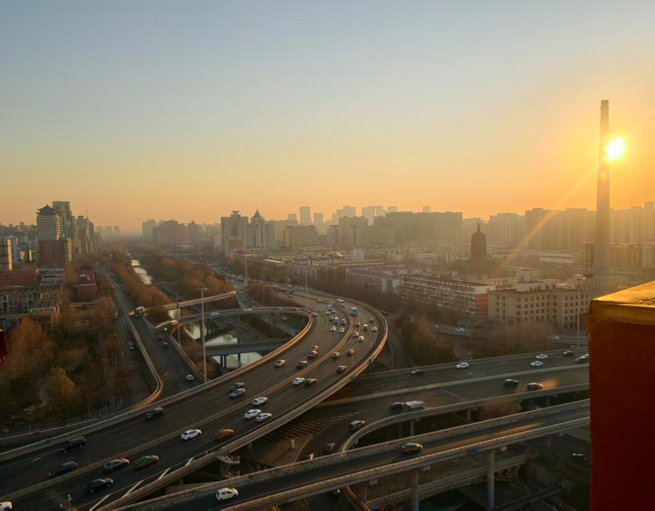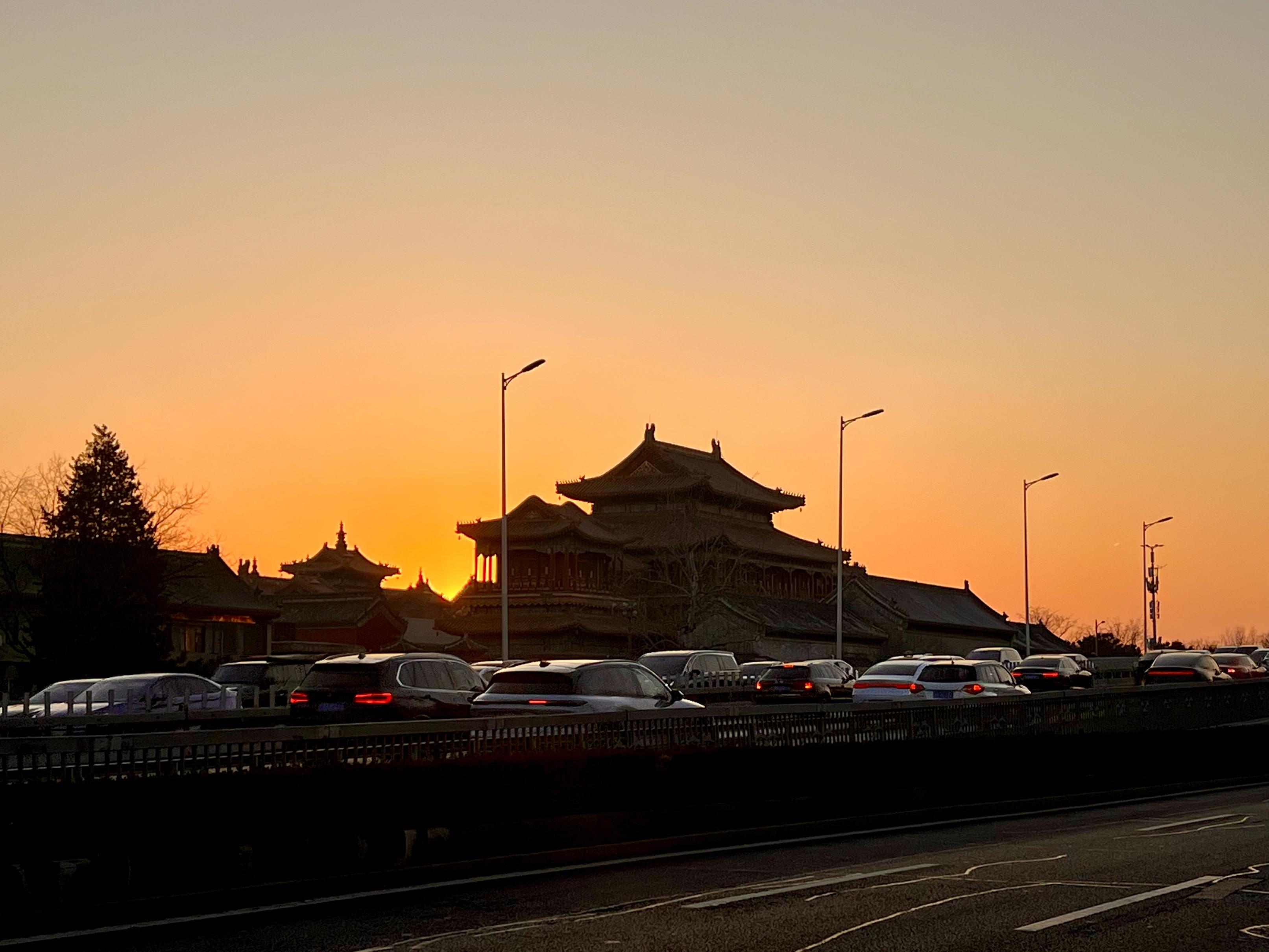 2026年第二天,北京的傍晚,落日熔金,余晖似火,将天际染成绯红画卷,美好启新程!