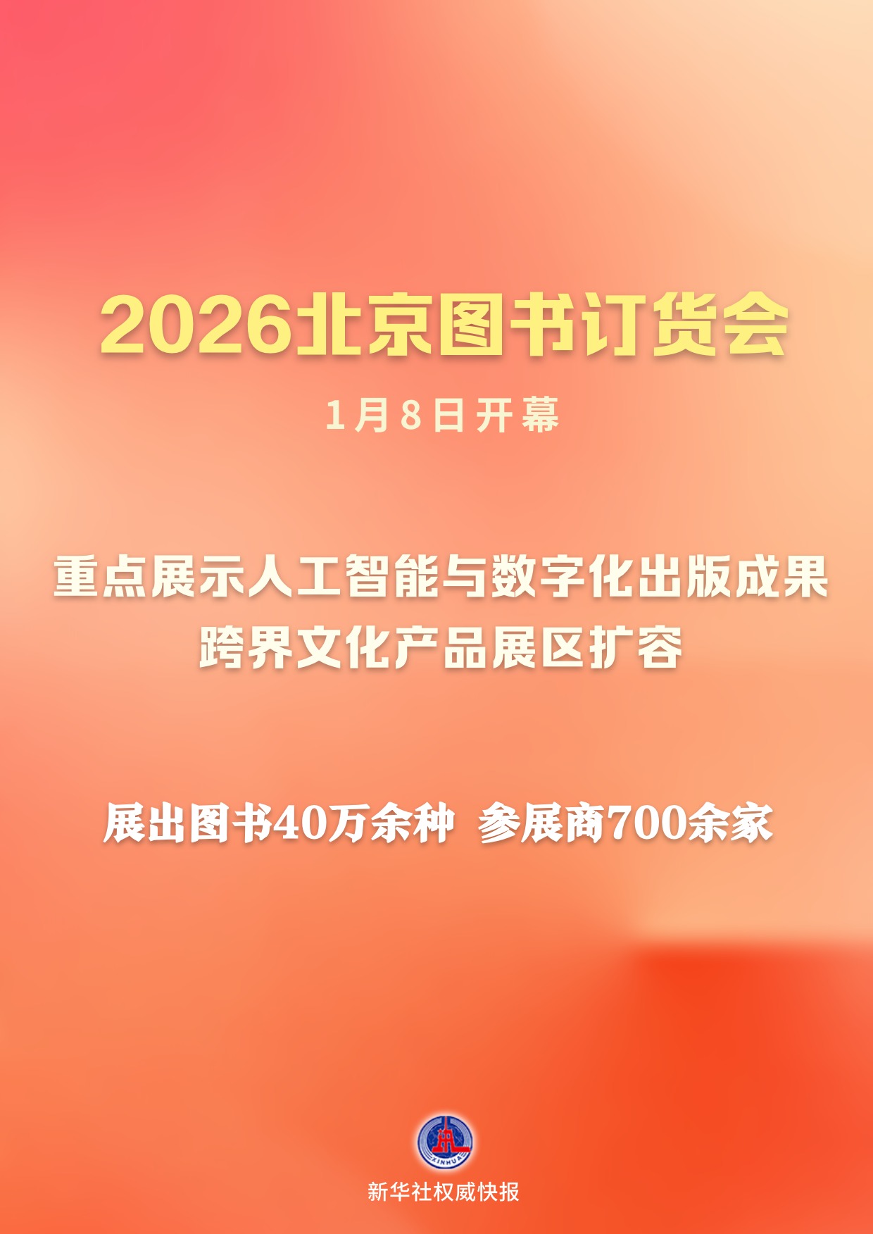 聚焦“谋新篇 开新局 启新程,续写出版发行业新辉煌”主题,2026北京图书订货会1月8日在京拉开帷幕。本届订货会展览面积5万平方米,展出图书40万余种,参展商700余家,展台数量2700余个。跨界文化产品展区展位101个,比上届增加了1/3。