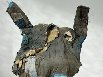 这是一件千疮百孔、残破不堪的“襖袍”,几乎看不出原来的颜色,大大小小的补丁一层摞着一层,领口衣襟处露出发黄发黑的破棉絮……然而,它不是一件寻常旧衣,它是一件特殊的长征革命文物,背后有一段感天动地的故事。