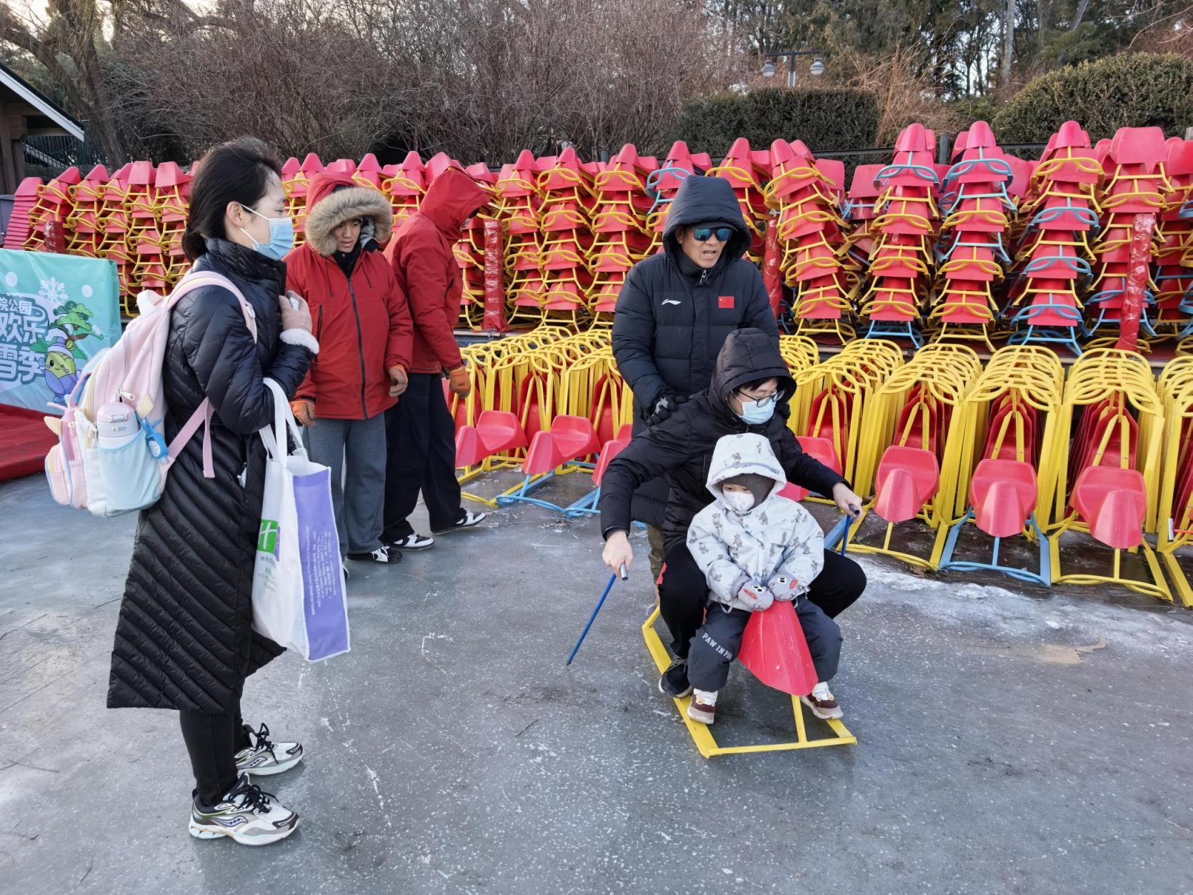 安全保障方面,公园实施多重措施筑牢安全防线。每日多时段监测并公示冰层厚度,通过网格化安全管理与应急值守确保现场秩序;全面更新冰车、冰上自行车等核心设备,采用防滑耐磨的冰雪专用材质,并加强日常检修,保障设备运行平稳。服务方面,现场为有需求的游客提供免费开水、小药箱,专职服务人员确保游客诉求及时得到解决。