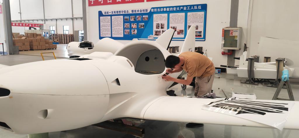 在弥勒浩翔科技有限公司的生产车间,工人正在组装飞机。新华社记者浦超 摄