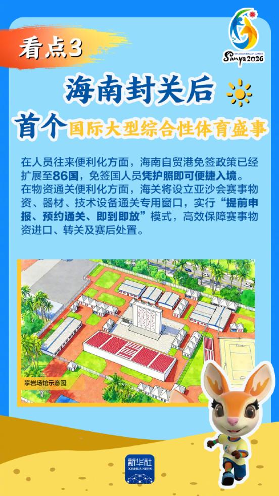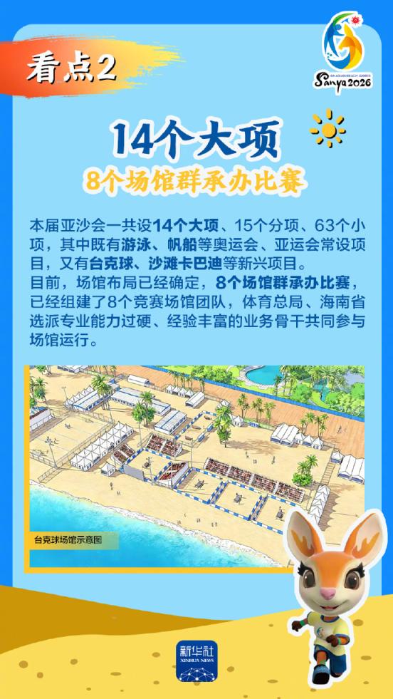 第六届亚洲沙滩运动会将于2026年4月22日至30日在海南三亚举行,赛事历时9天。作为海南自由贸易港封关运作后迎来的首个国际大型综合性体育盛事,亚沙会都有哪些看点?为何值得期待?国新办12日发布会做了详细介绍,一起来看。