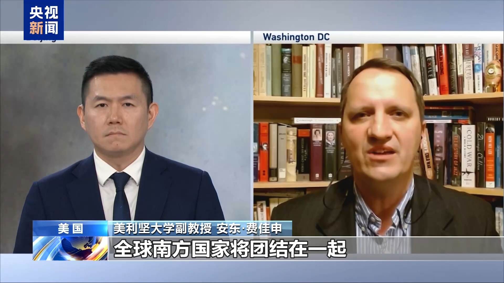 美利坚大学副教授 安东·费佳申:我认为我们正在进入一个全球碎片化的时期,我们确实进入了一个美国霸权相对衰落的时期。特朗普政府的行为在某种程度上就是具体的表现,这是美国单极霸权的垂死挣扎。