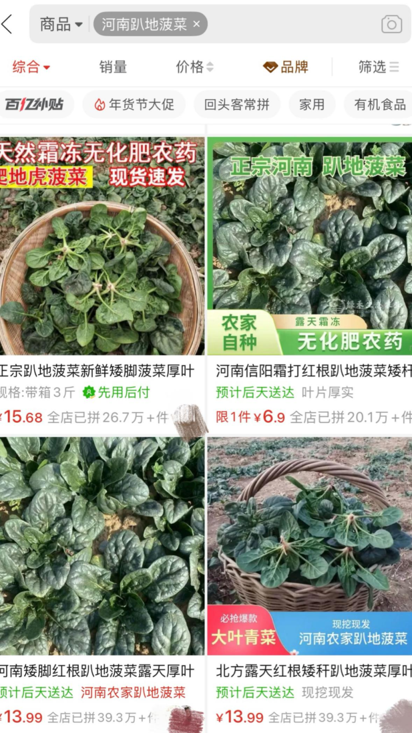 今冬,一种名为“趴地菠菜”的蔬菜在网络上悄然走红。不少网友品尝后感叹“没有普通菠菜的涩感,白水涮后就很清甜”。人民日报健康客户端记者在电商平台上检索发现,“趴地菠菜”成为热销商品,部分店铺拼单量达数十万,价格略高于普通菠菜。