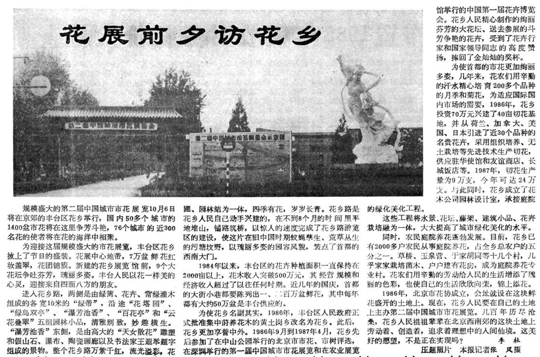 那时候,农民家庭庭院养花也在蓬勃发展。花木公司积极引导农民种植适销对路的花木品种,并帮助他们销售。1984年,花乡地区有2000多户农民从事庭院养花,草桥、玉泉营、于家胡同等13个村几乎家家栽培苗木,户户建有花房,成为庭院养花专业村。(1984年11月11日《北京日报》2版,《集体个人都种花花乡四季飘花香》)樊家村农民刘焕尧就是看准了花卉市场的巨大潜力由种菜改为种花的。他在8亩承包地里种植了菊花、剑兰、玫瑰等花卉,一年下来纯收入在10万元左右,成为远近闻名的种花专业户。在京郊,像刘焕尧这样靠养花致富的农民越来越多,顺义、大兴、延庆等地的花卉种植面积每年都在增加。