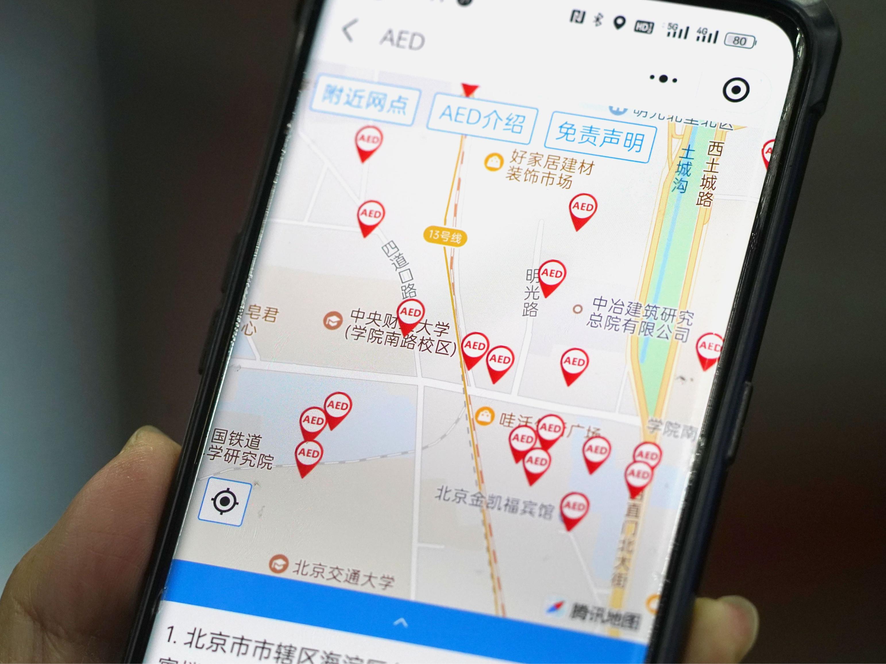 北京在“北京120”微信小程序推出的AED电子地图正稳步升级。陈志表示,今年,AED电子地图将重点提升信息数据准确性,扩大设备覆盖范围。“我们还计划将核心信息引入主流导航地图,并与120调度指挥系统深度联动,不仅方便市民快速检索、定位,还能进一步提升设备使用率。”