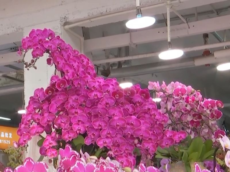 作为“中国蝴蝶兰之都”,里水镇蝴蝶兰年产量占全国市场的三分之一。目前超过350家种植企业、80多家电商企业在此汇聚,线上销售占比超过30%。截至目前,里水年宵花已销售约1000万株,销售额同比增长10%,预计随着春节临近,蝴蝶兰销量还将快速上涨。