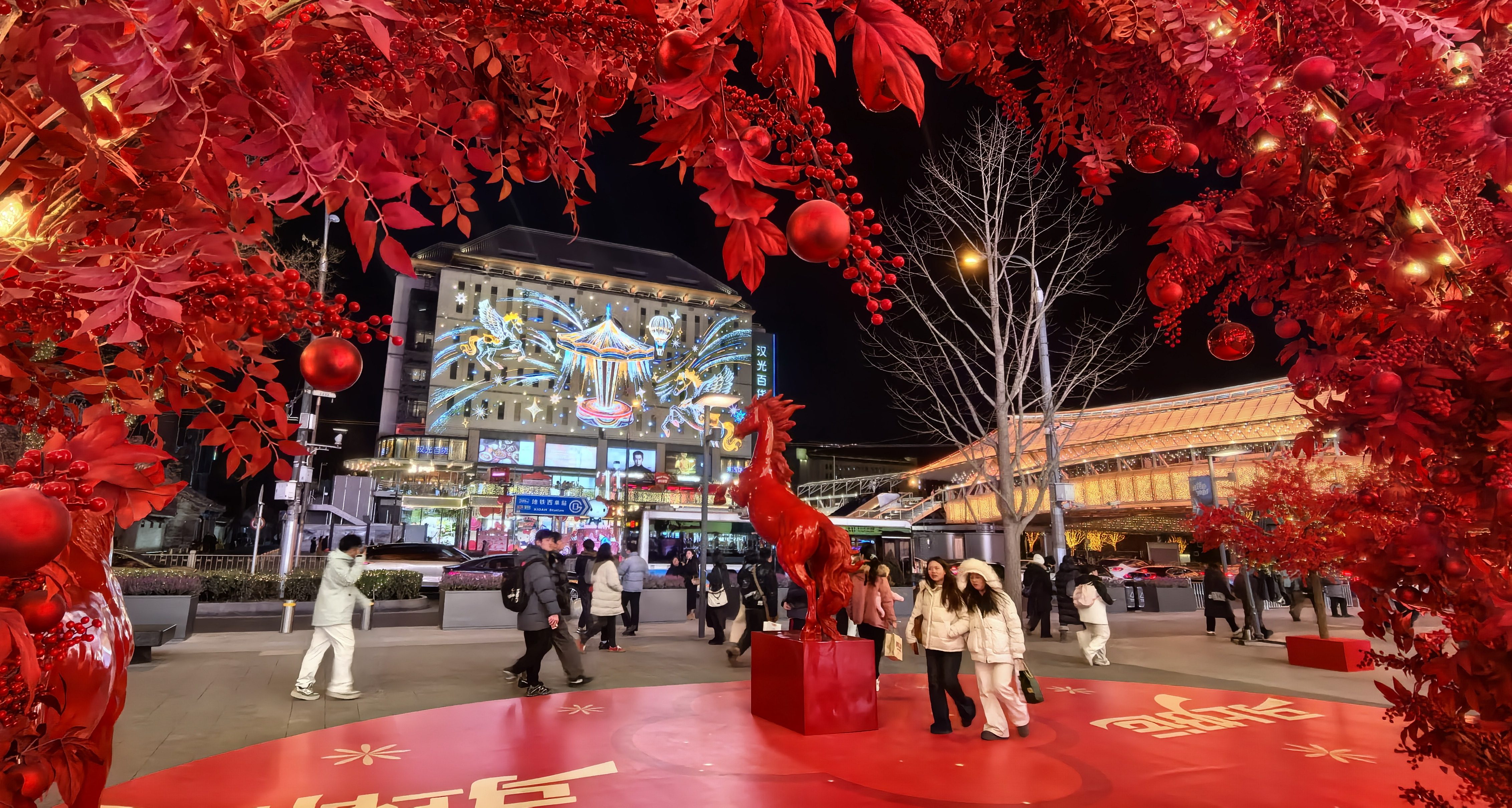 ↑节日氛围浓厚的西单商业街(1月16日摄)。