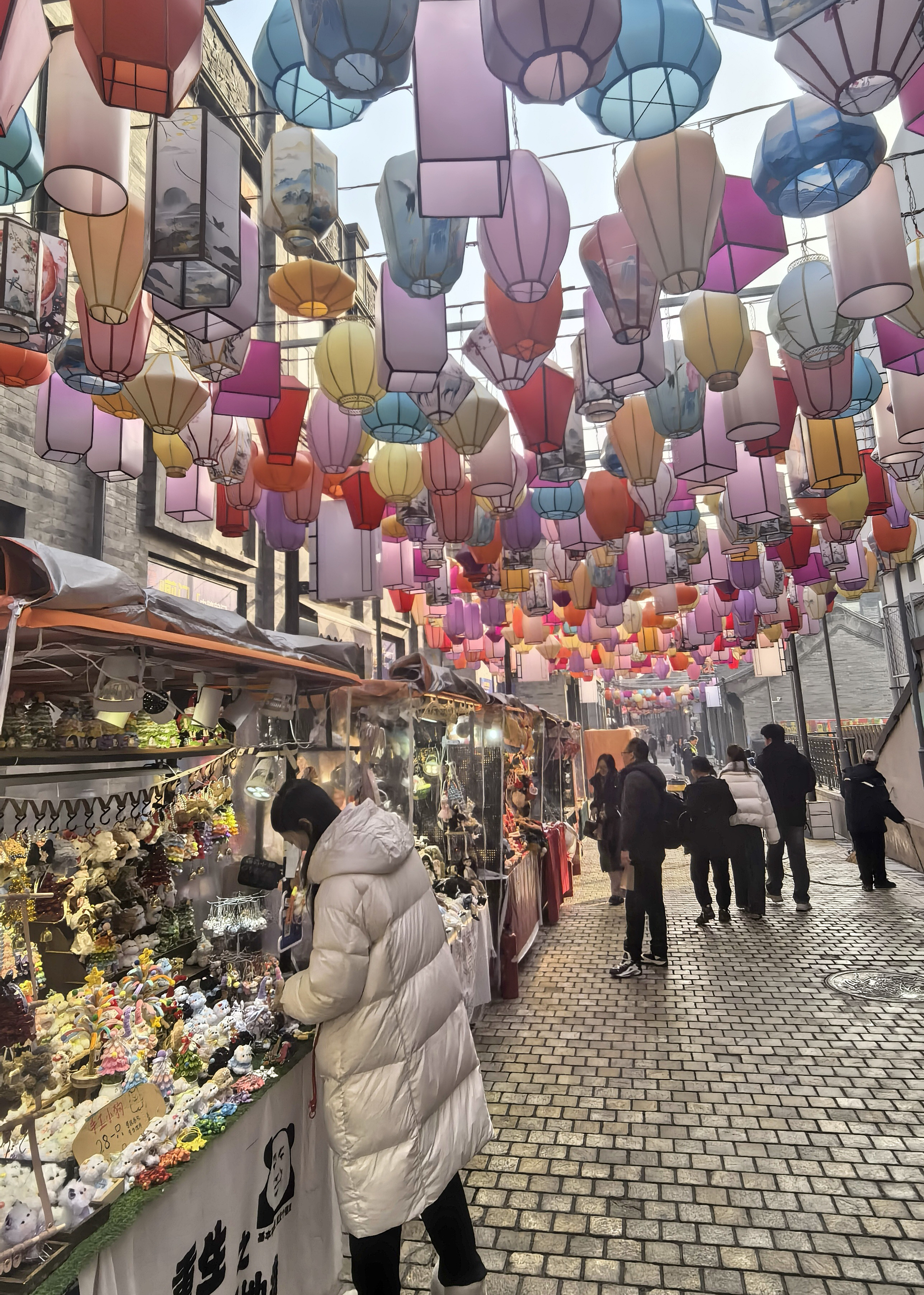 春节临近,北京市的王府井、西单和前门等商圈悬灯结彩,大批年货上市,浓浓的年味扑面而来。