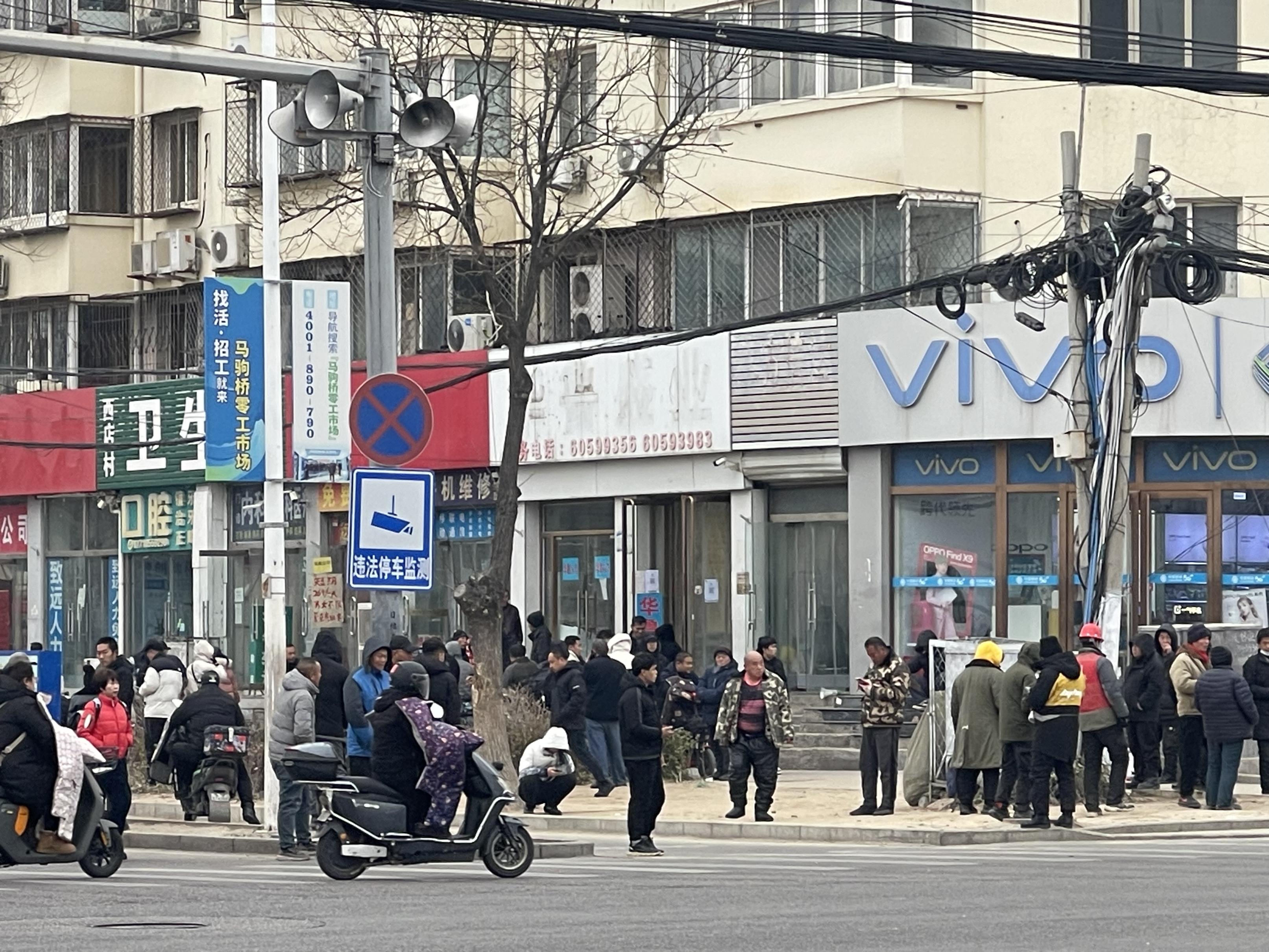工作日的马驹桥商业街十字路口,仍聚集着不少“等活儿”的劳动者。尽管不远处就是政府开办的零工市场,一些人仍习惯在街口蹲守,等待工作机会上门。他们中大多期盼着日结的零活,也有人专门冲着“春节档”而来,希望趁着用工缺口找到合适的岗位。