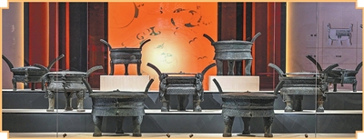 考古成果展上展出的青铜升鼎。