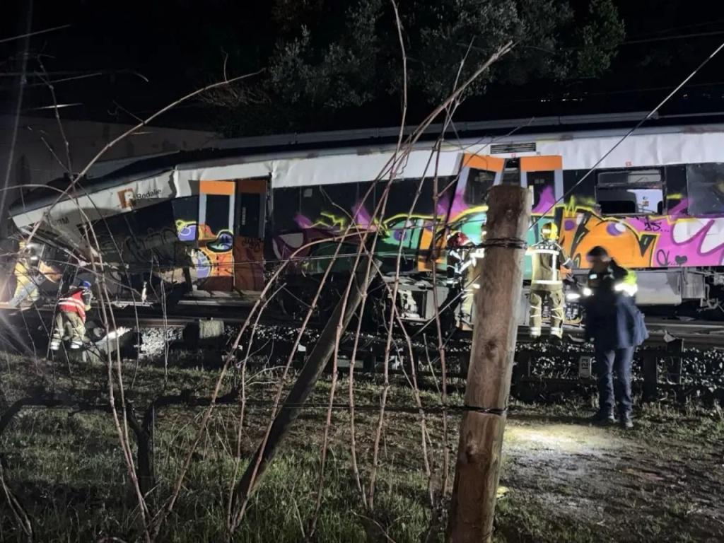 当晚,一列行驶在巴塞罗那近郊R4线、开往曼雷萨方向的列车在赫利达与马尔托雷利之间脱轨。据西班牙紧急事务部门通报,该通勤列车因与轨道上坍塌脱落的防护墙撞击而脱轨。警方称,驾驶室内至少有一人遇难。