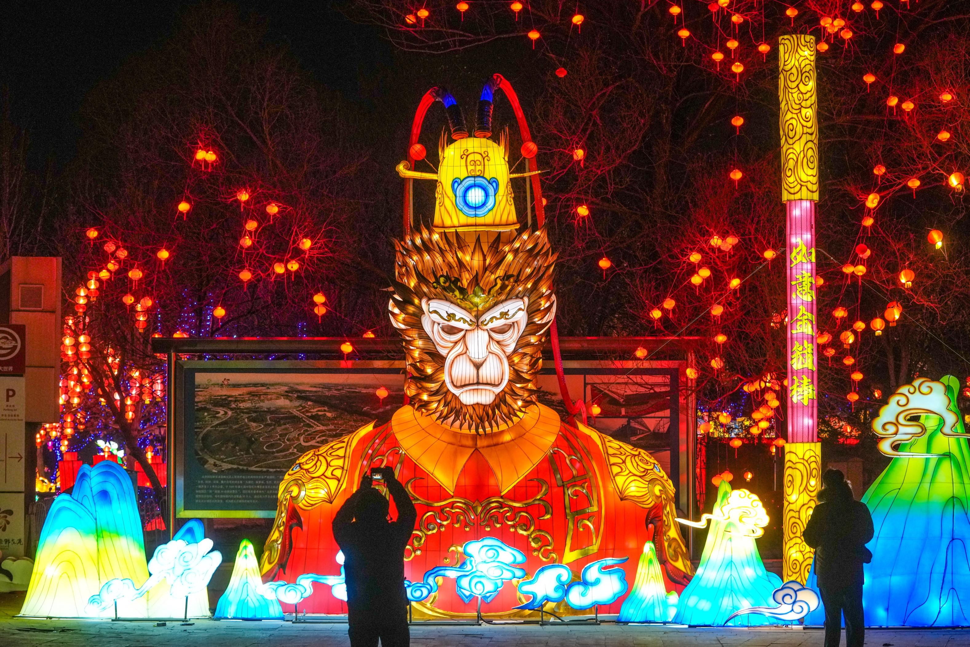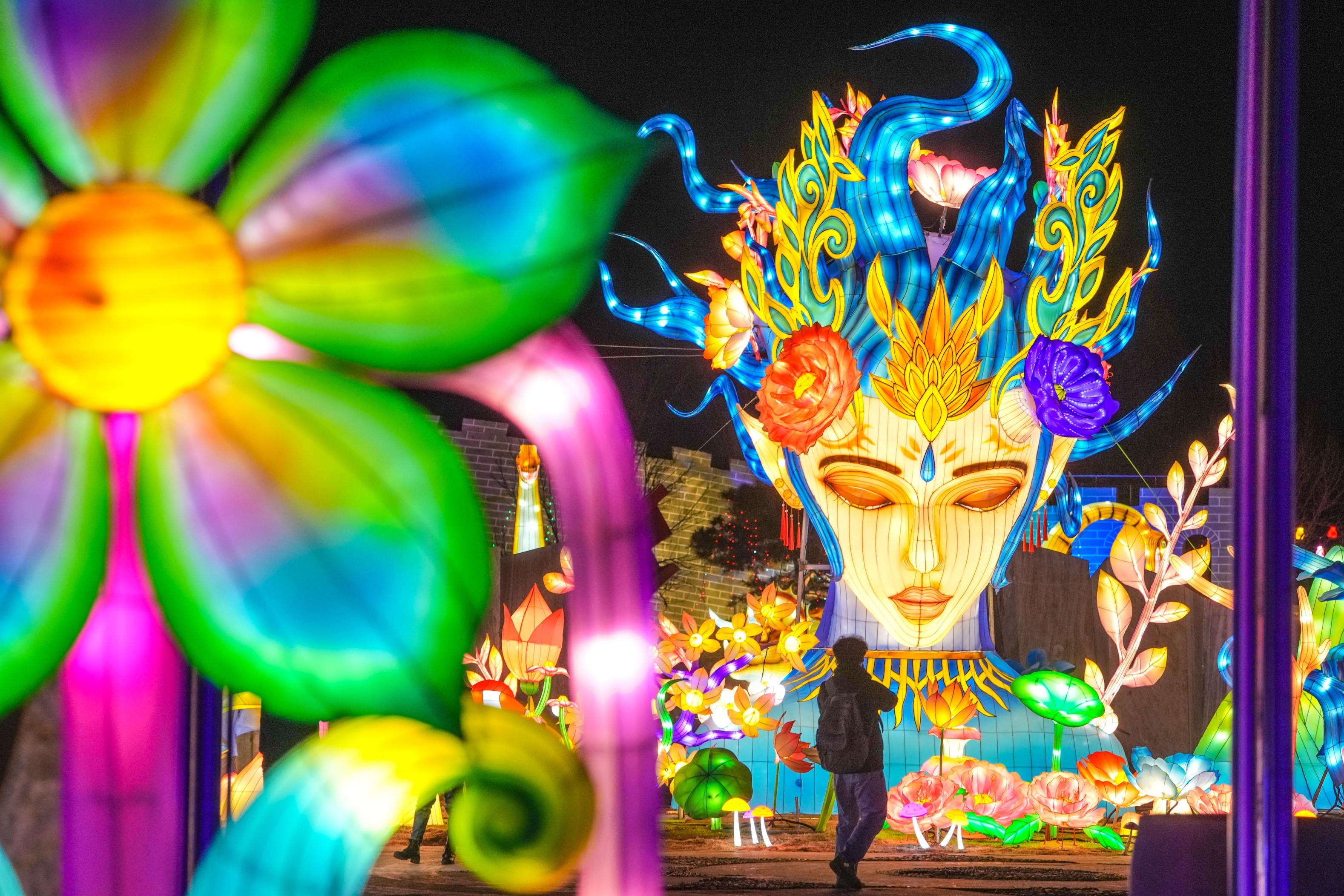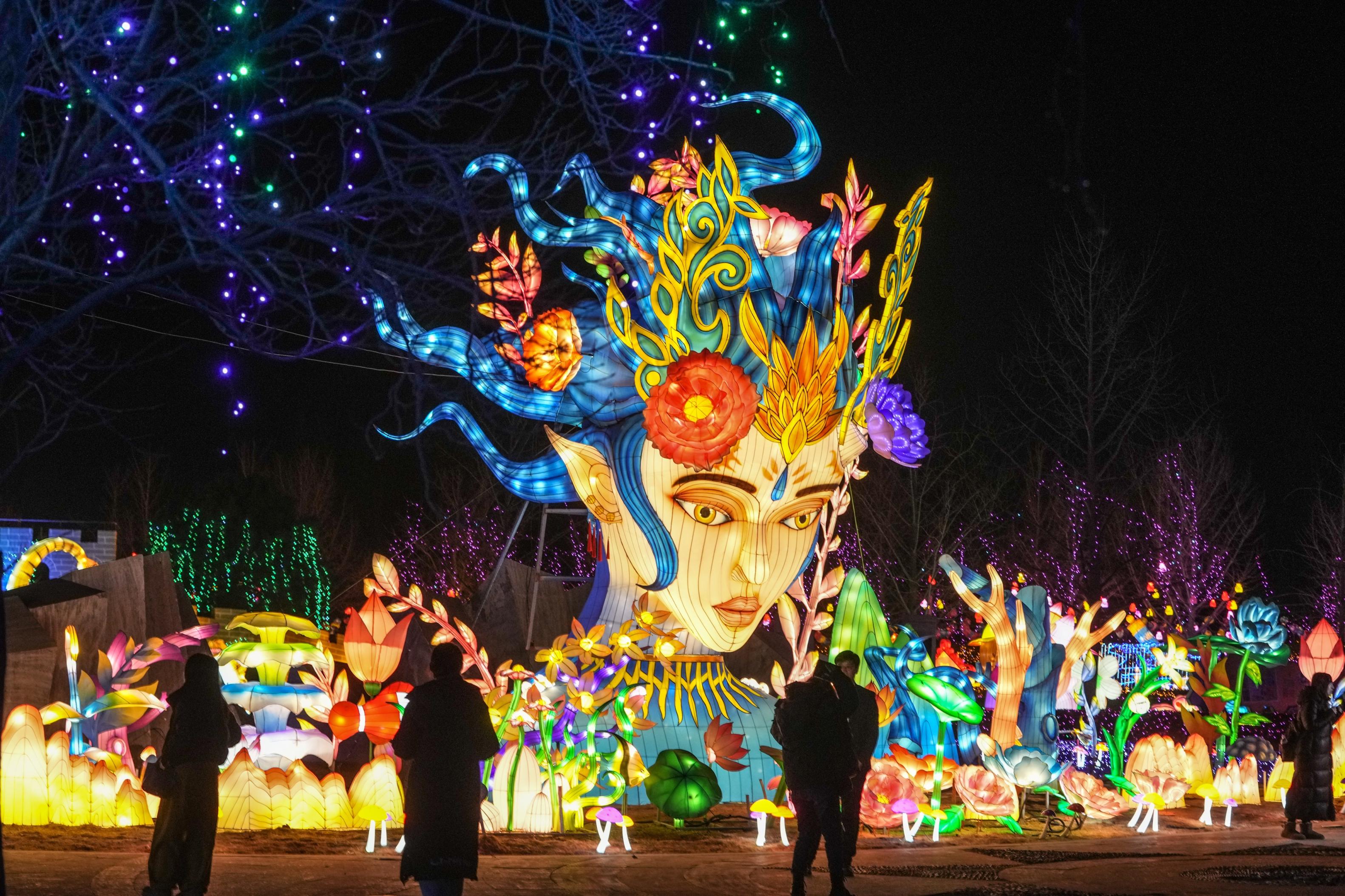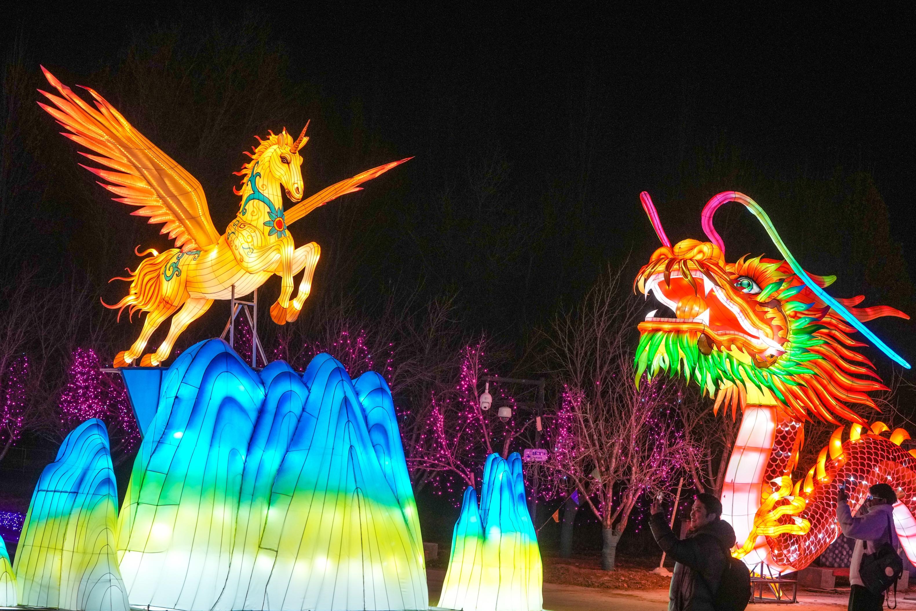 其中,“十二花神卷轴”灯组将传统花神意象凝练成流光溢彩的巨幅画卷,景区地标“花神”景观同步完成艺术亮化,一步一景皆入画;“顺义八景”光影景观娓娓诉说本土文脉故事,串联起地域文化记忆;“百米长龙”气势磅礴、“黑神话悟空”潮酷吸睛、“顺义八骏・祥启潮白”灵动雅致,诸多特色灯组各藏巧思,既承载民俗祥瑞寓意,又深度融入国潮潮流元素,让市民游客在灯火流转间,沉浸式感受传统文化与现代审美的碰撞交融。